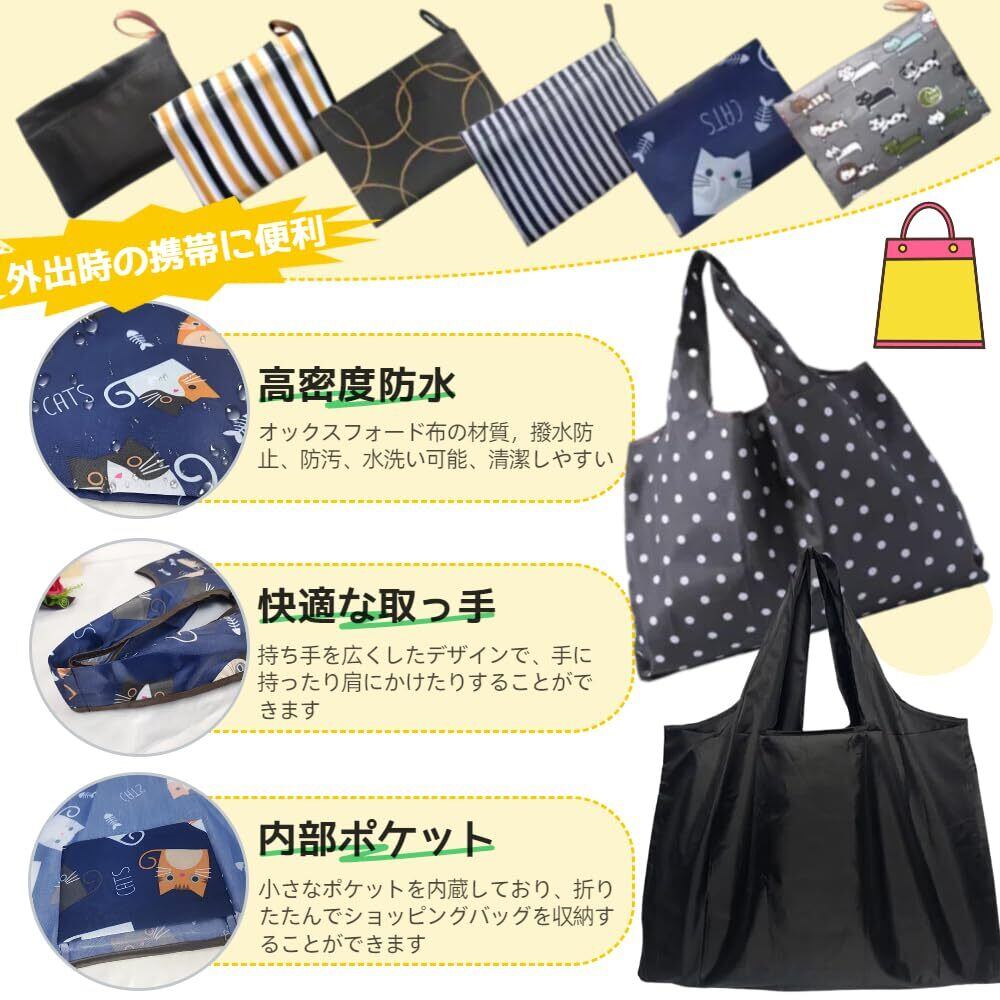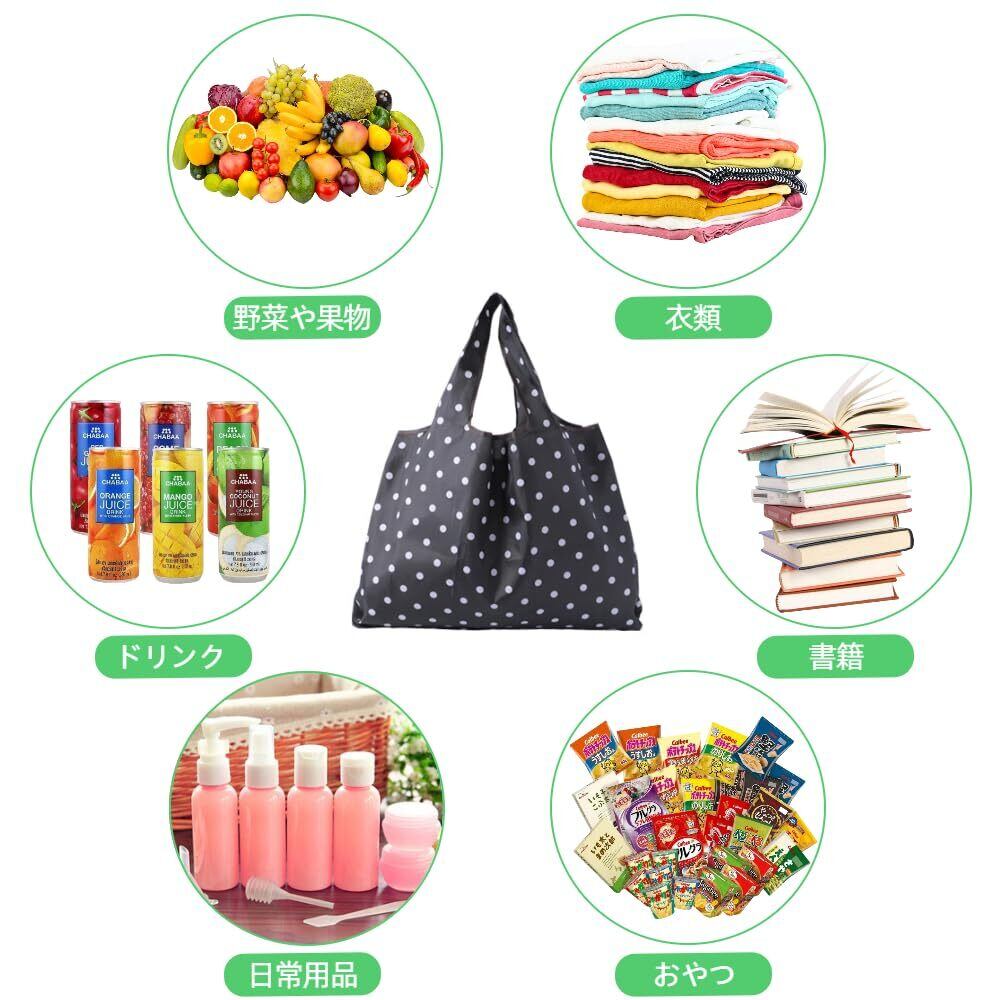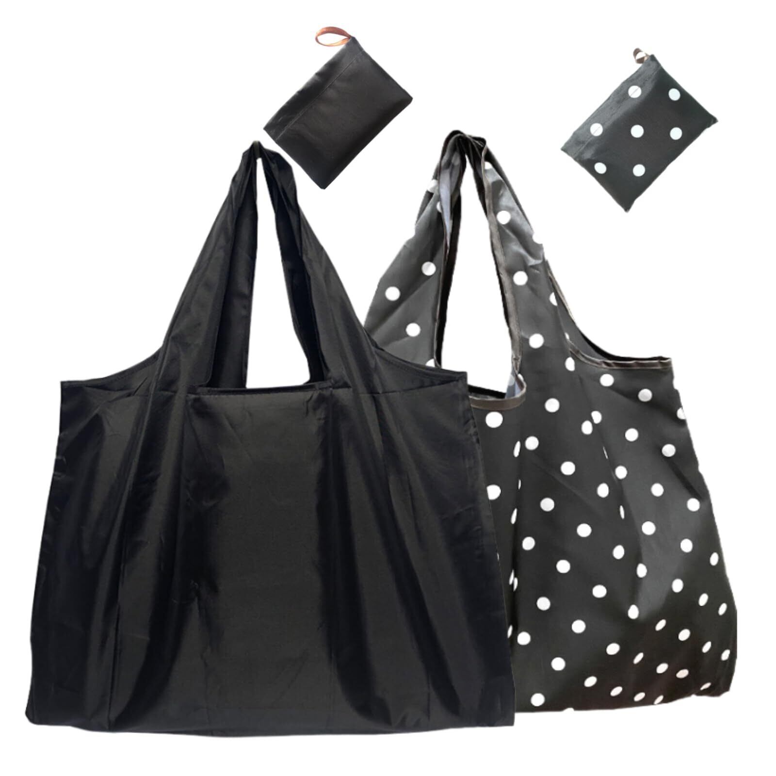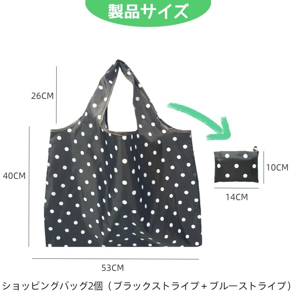 【内容】エコバッグ2個(黒+黒波点)、展開サイズ:53CM×66CM、折りたたみ後サイズ:14CM×10CM。