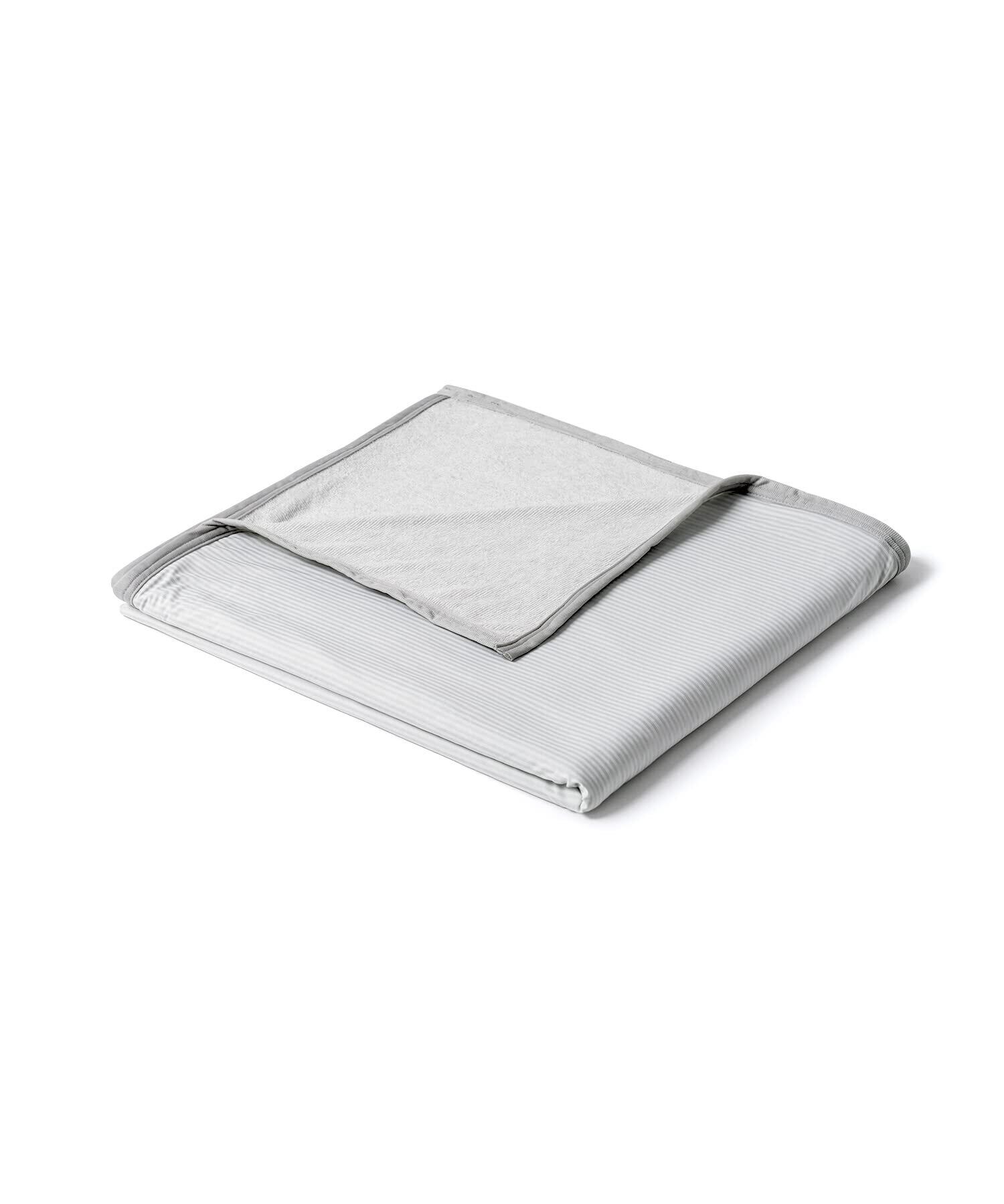 【両用】両面の素材が同じではないタオルケット。片面には接触冷感生地を使用。近頃の熱帯夜はもはやエアコンなしではなかなか寝苦しくなってしまいました。もう片面はパイル生地。夏の深夜の時、温度が下がって、この面を使用してちょうどいい!そして、汗をかきやすい夏だからこそマメにお手入れしたいもの。だからこちらの面のパイル部分には、お洗濯しても乾きやすいポリ生地を採用。