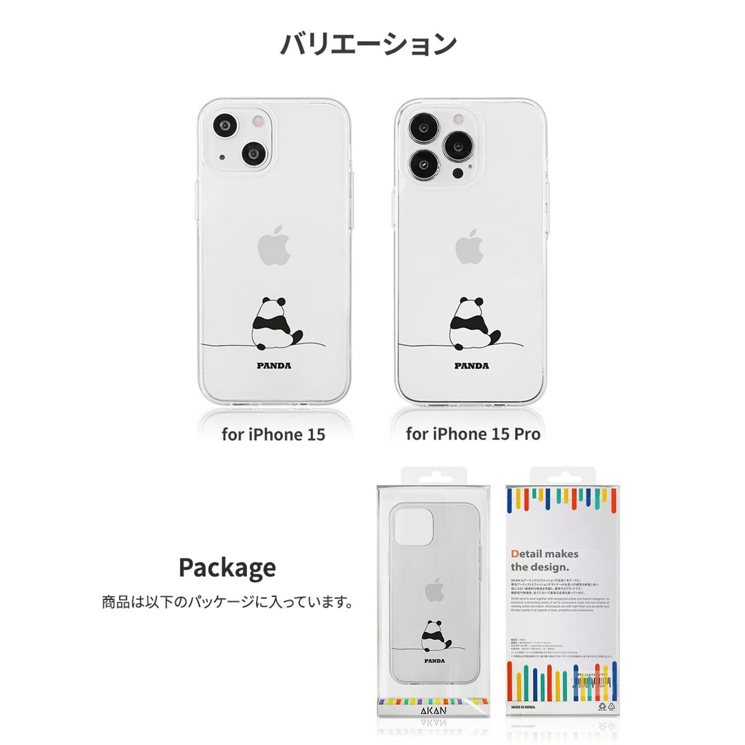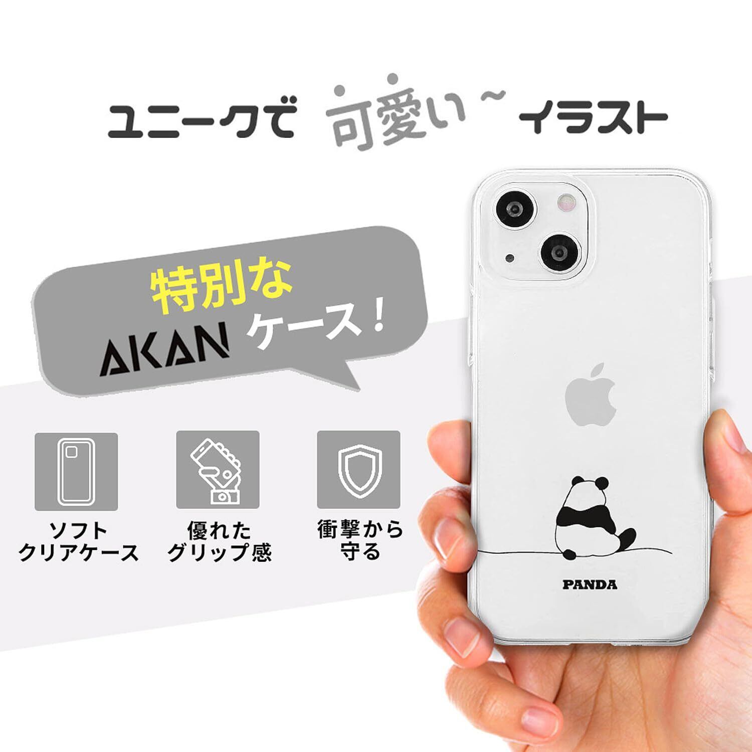 AKAN iPhone 15 ケース ソフトクリアケース [ 透明 密着痕防止 TPU 変色しにくいUVプリント 防塵 Qi充電 ワイヤレス充電 ] かわいい 人気 キャラクター アップル アイフォンケース AK25622i15 パンダ 【国内正規品】 | BASE SHOP