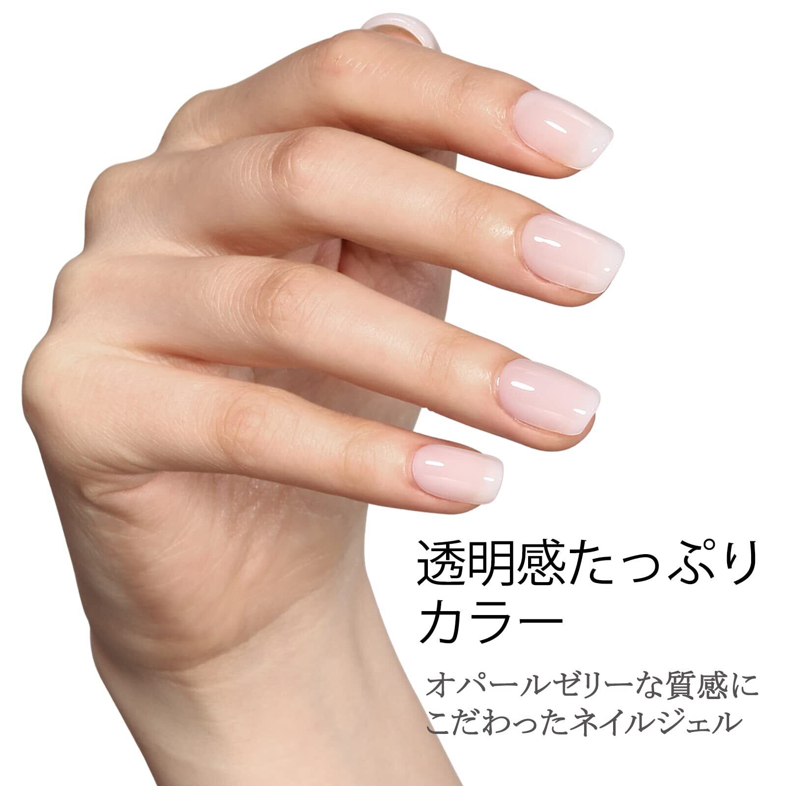 【ゼリースタイルのジェルネイル】オパールゼリーな質感にこだわったネイルジェル、透明感たっぷり。さりげなく洗練された透明感のあるヌードスタイル。日常生活、仕事、デートに使えます。 フレンチネイルを作成するベースカラーとしても使用できます。単色として使用だけでなく、ブルーミング、ホログラム、押し花などのりやデザインにも適用。