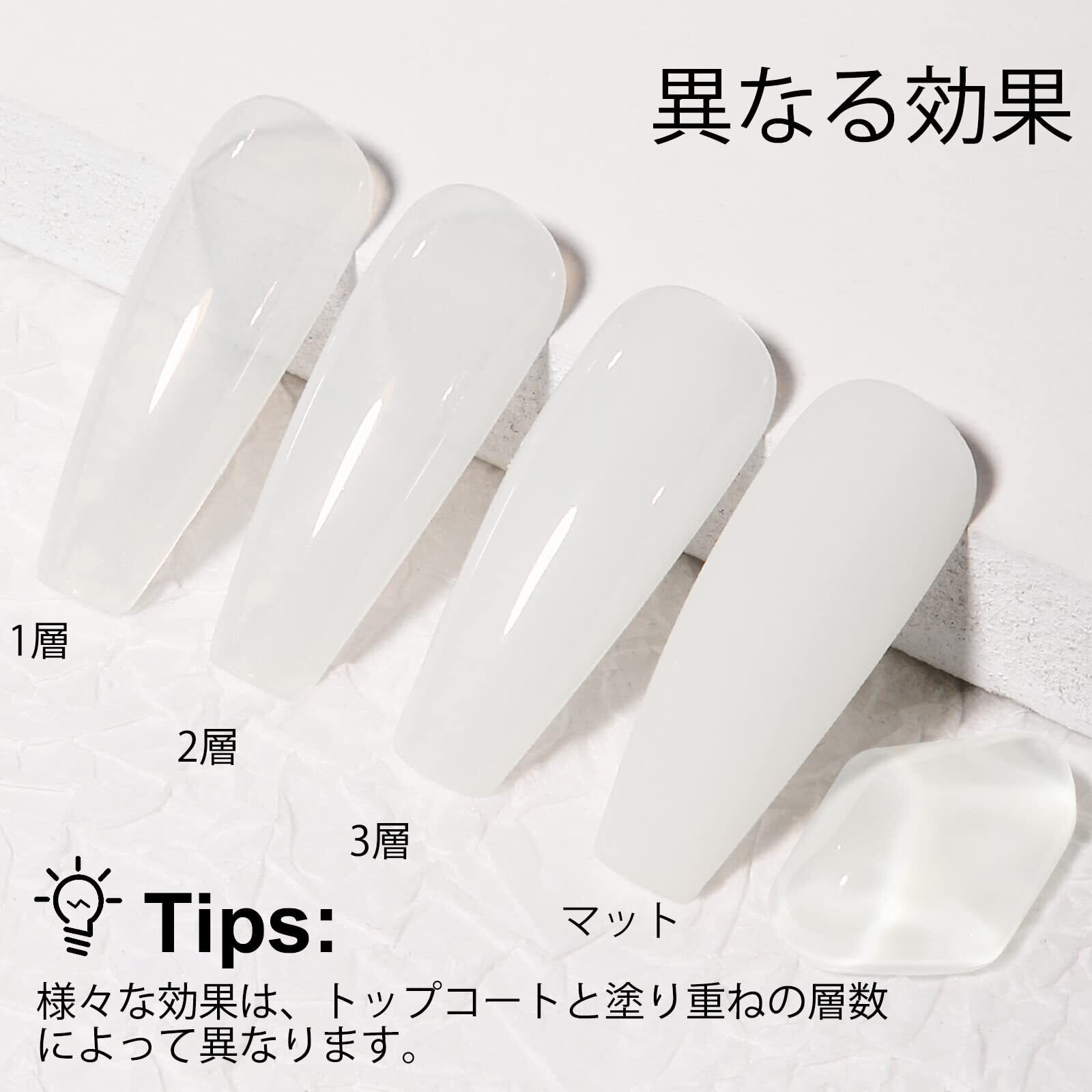 【使用のヒント】本品はシアーカラージェルで、すばやく軽く塗ると、色がより均一になります。 最も重要なことは、色の深さは爪のベースカラーと適用されるレイヤーの数によって異なります。レイヤーが少ないほど透明感が増し、レイヤーが多いほど鮮やかになります。