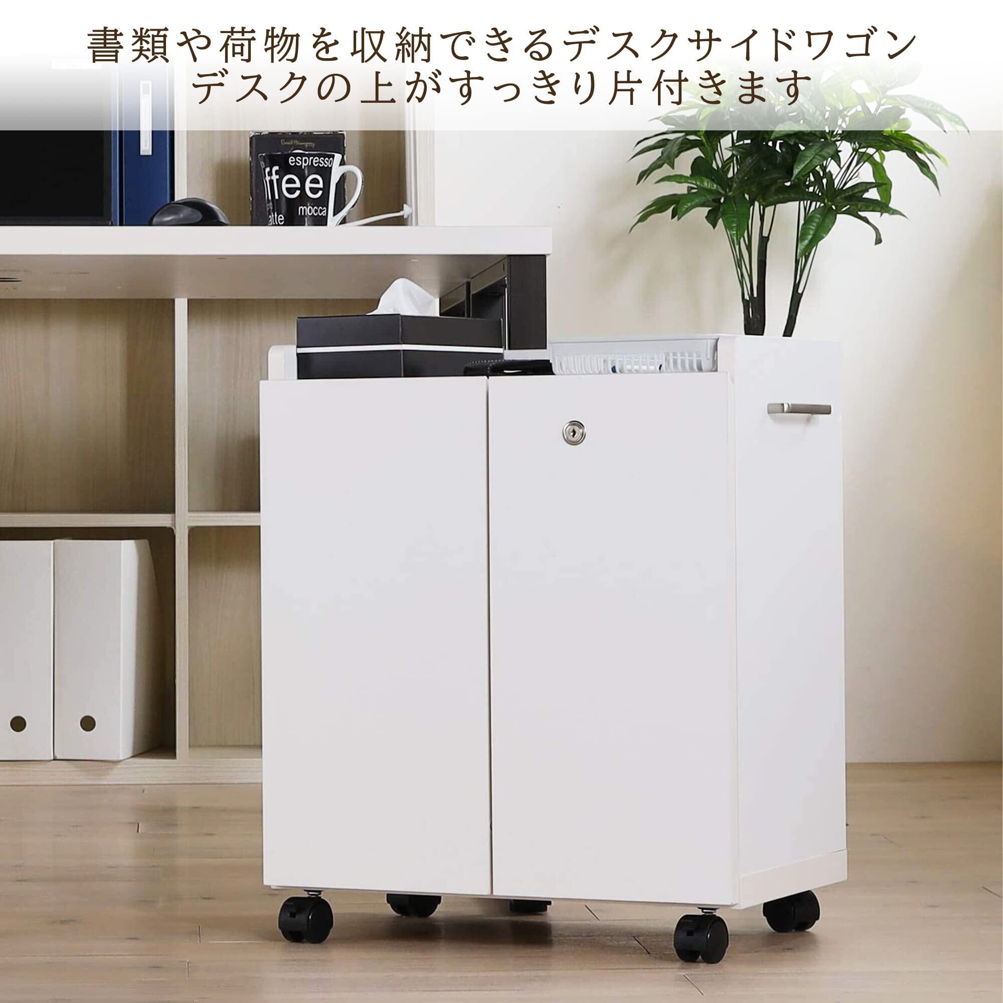 白井産業 デスクサイドに便利 サイドワゴン ラック キャスター付 扉 鍵付き デスク下収納 背面化粧 木製 白 幅50 高さ59.2 奥行31cm OF2-6050DC オフィスコ2 | BASE SHOP