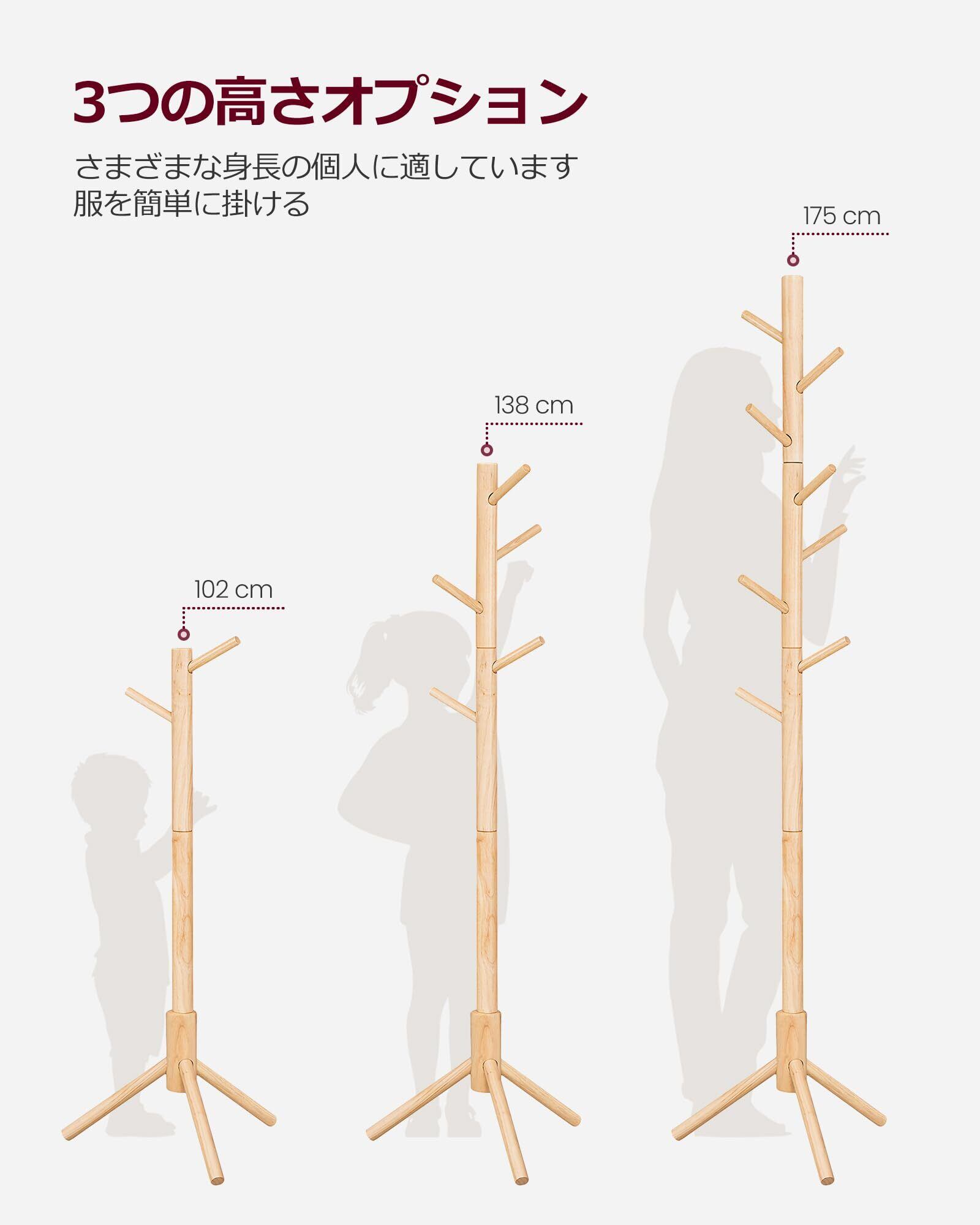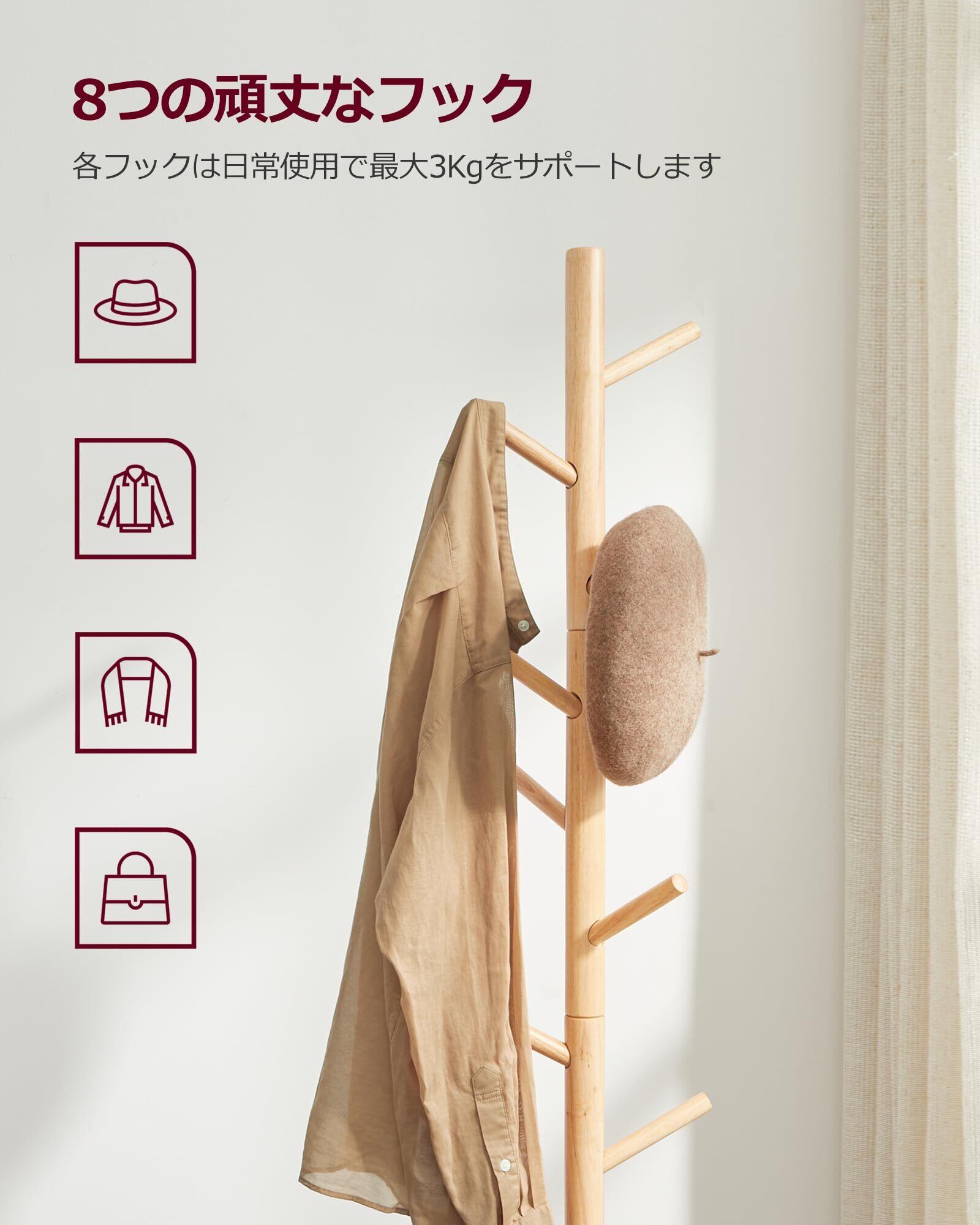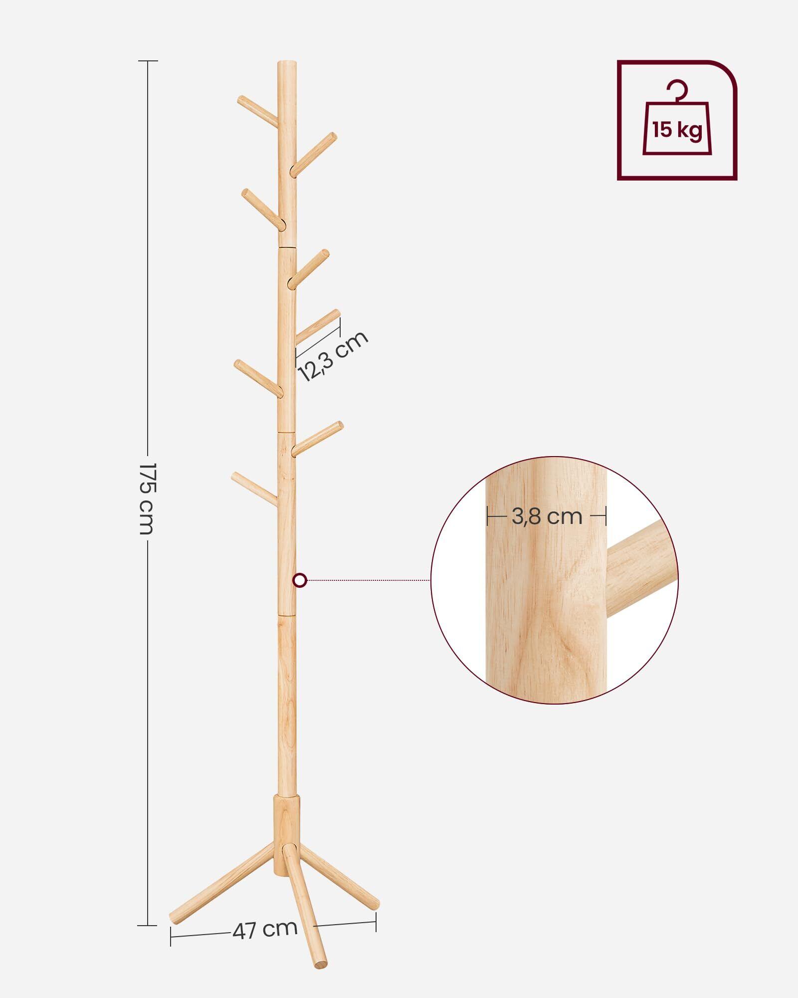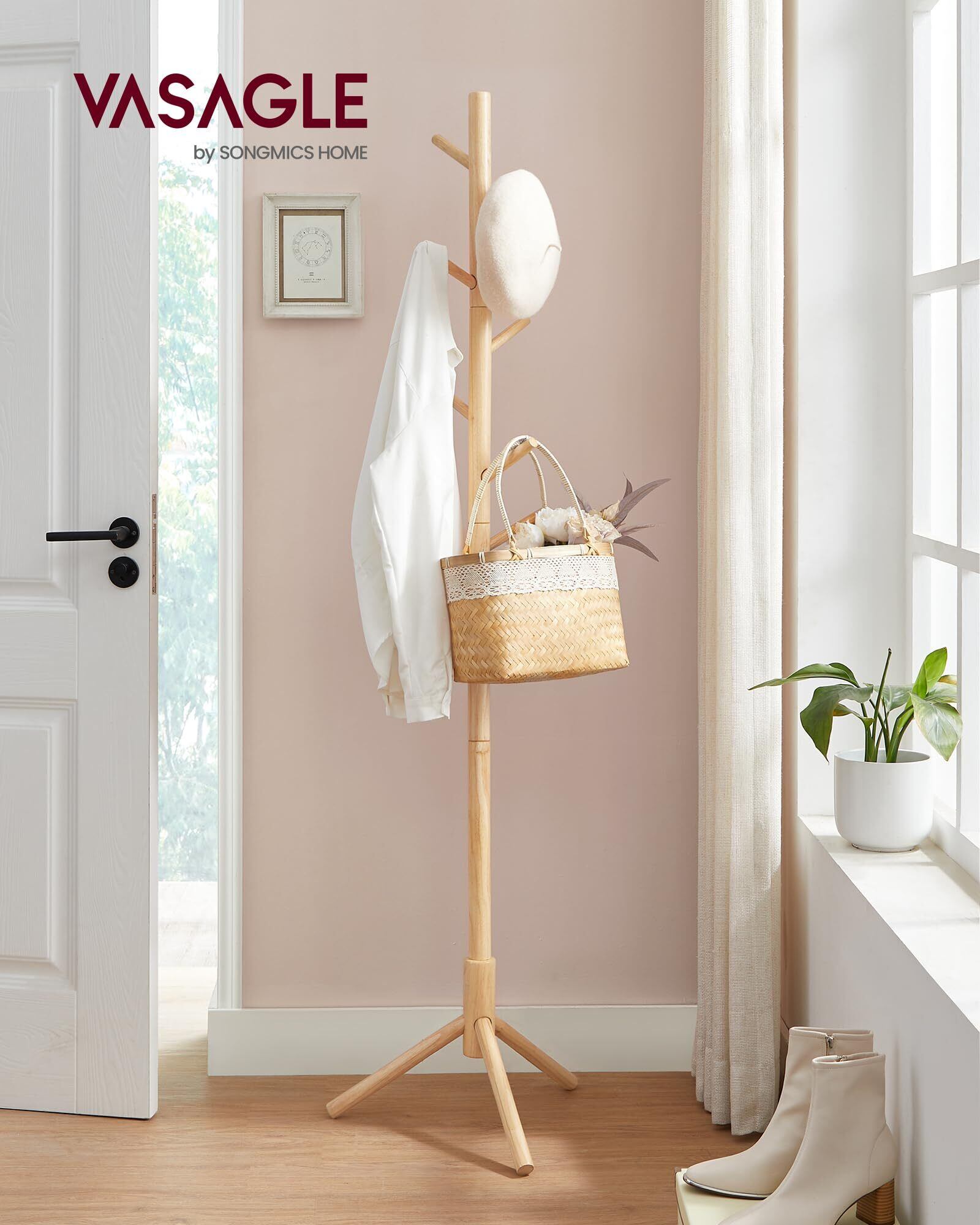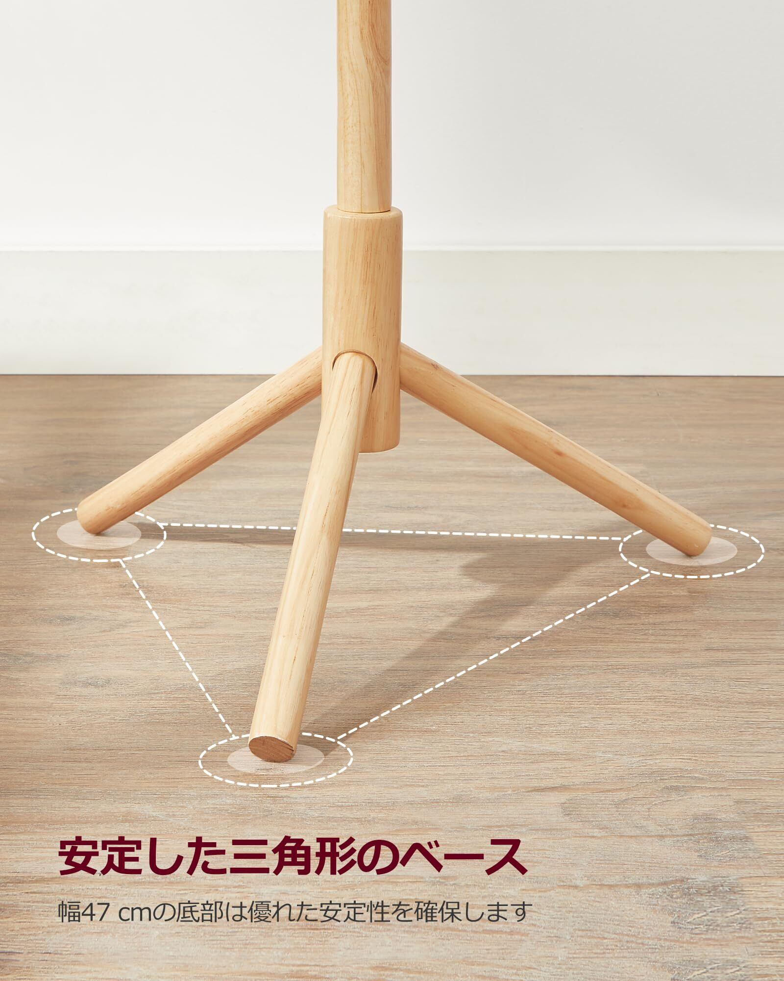 VASAGLE ポールハンガー おしゃれ 木製 スリム 頑丈 コートハンガー キッズ 玄関 ハンガーポール コート掛け 帽子掛け スタンド バッグスタンド 服掛け バッグ掛け 上着掛け ハンガーラック カバー掛け 服かけスタンド 落ちにくい 47x47x175cm 木の色 RCR004N01 | BASE SHOP
