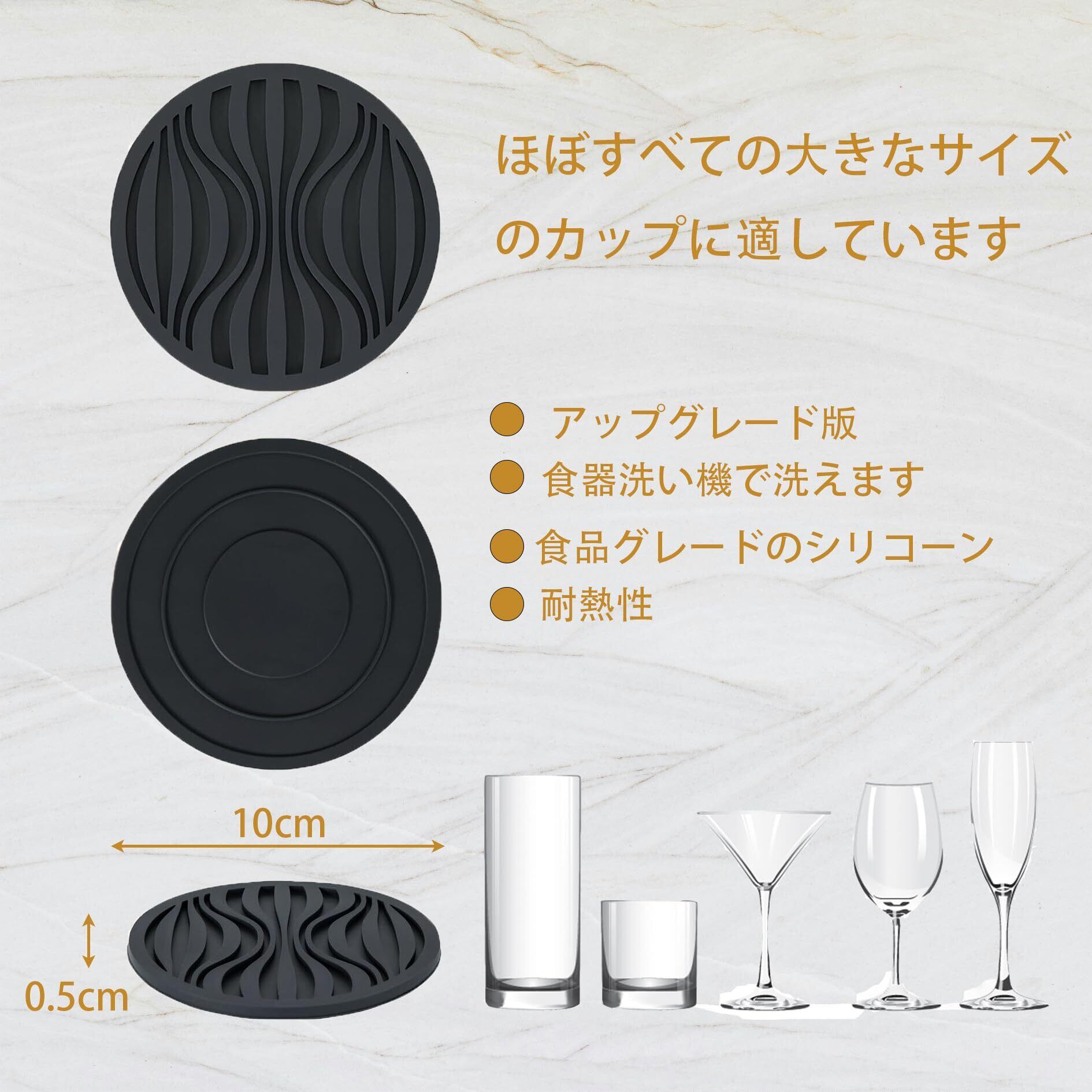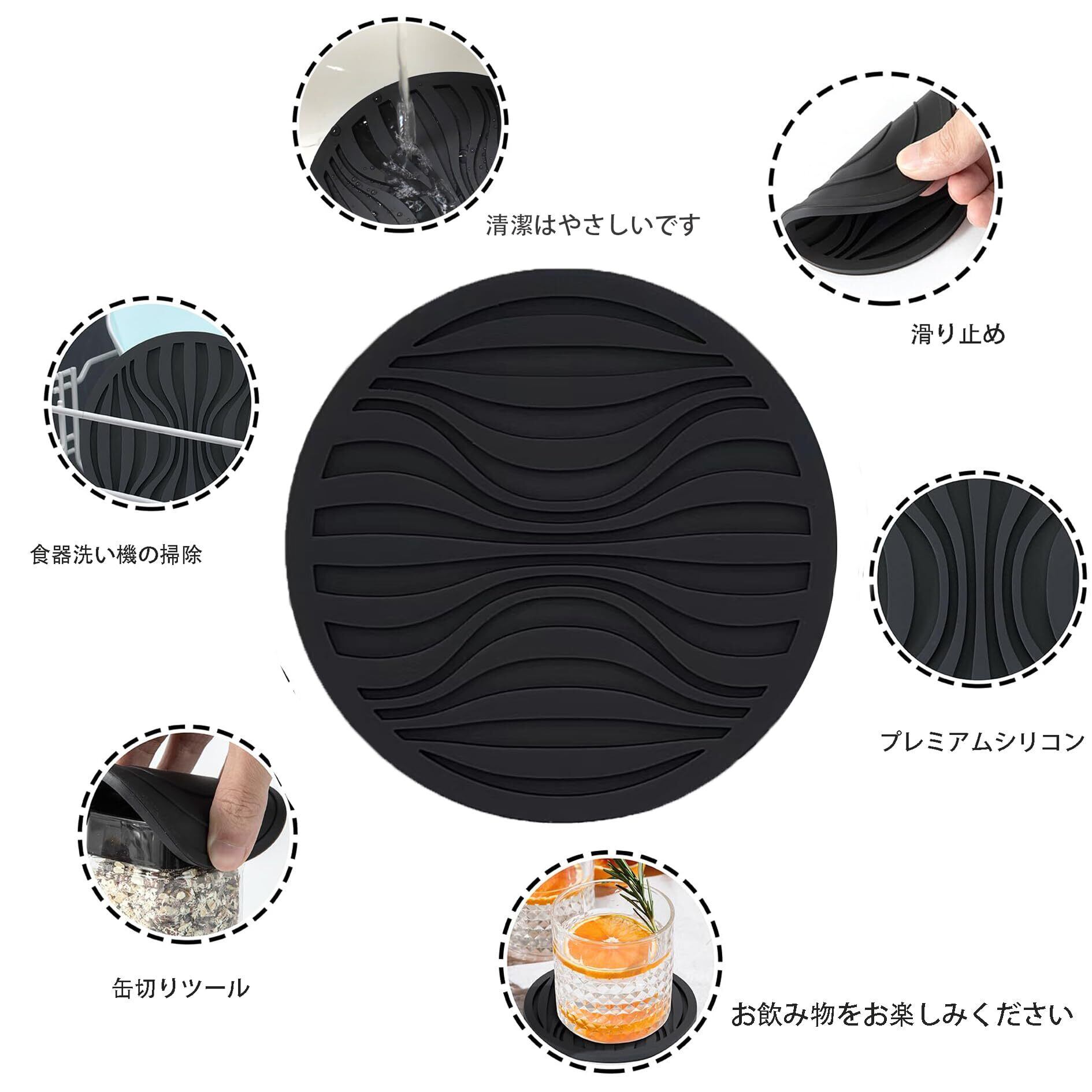 烏の樹 コースター くっつかないコースターシリコン 水滴を受け止める 結露の水滴防止 円形10cm (黒い4個)