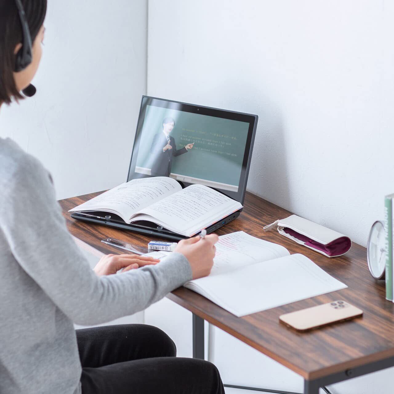 ノートパソコンのキーボード部分に被せるように置くことで教科書などを置いてデスクスペースを確保できます。