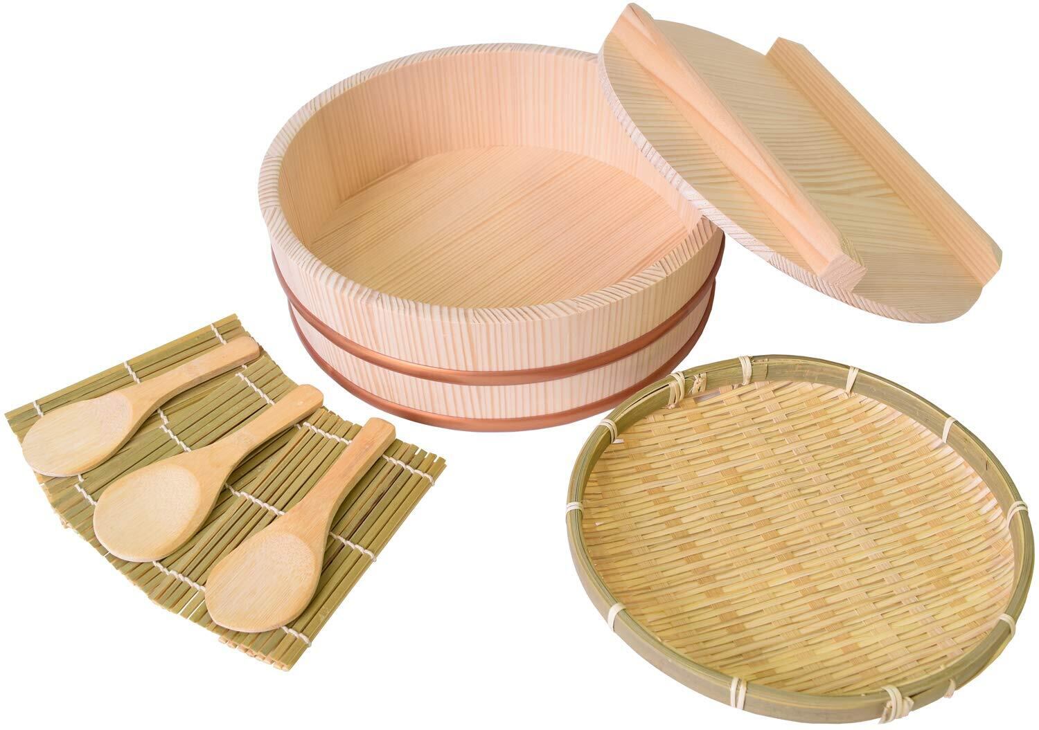 セット内容:寿司桶・蓋・盆ザル×各1個、ミニスダレ・しゃもじ×各3個