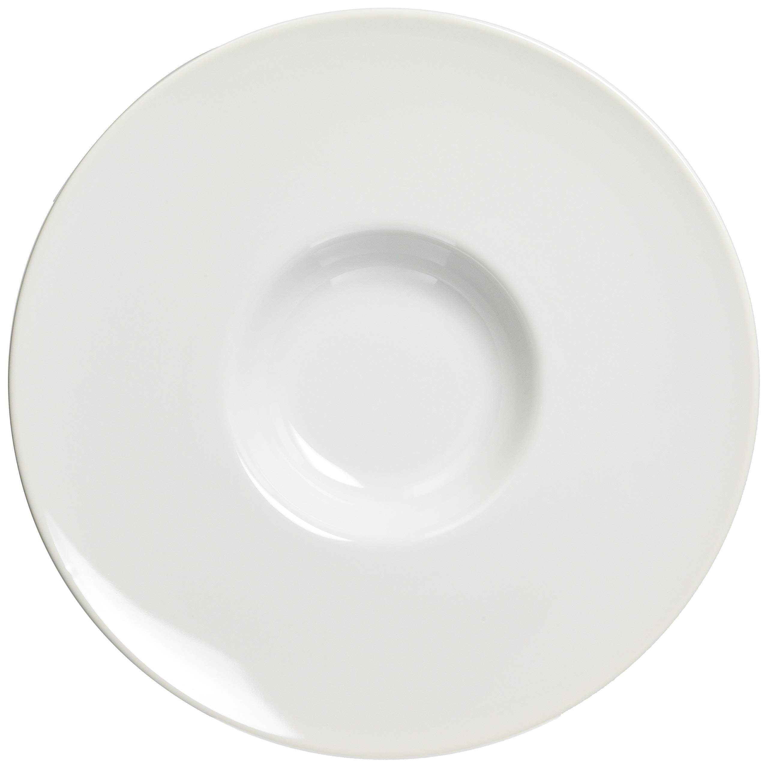 フレンチやイタリアンのお店でよく使われているオシャレな食器。幅広のリムで中央にくぼみのある平型のスープ皿。パスタ料理にも最適です。