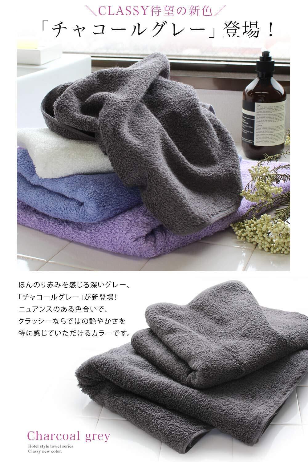 【ホテルスタイルシリーズの高級上質ライン】触れた瞬間、違いに気づいてもらえるような肌触り。お風呂上がりのリラックスした体を包み込むふんわりとした優しさ。ホテルスタイルタオルのハイクラスライン「クラッシー」は毎日の暮らしに少し加える贅沢感、より上質な時間を過ごしていただくために生まれたタオルです。独特のふんわりとした肌触り、つややかな光沢感と滑らかさを持っています。