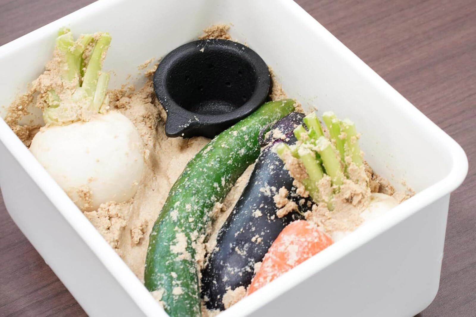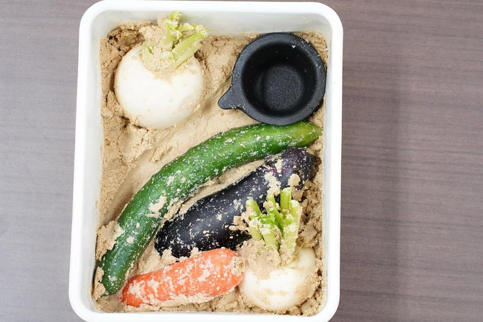 ●ヌカ床の余分な水分をとってくれる。鉄鋳物なので色づけ効果も兼ねている