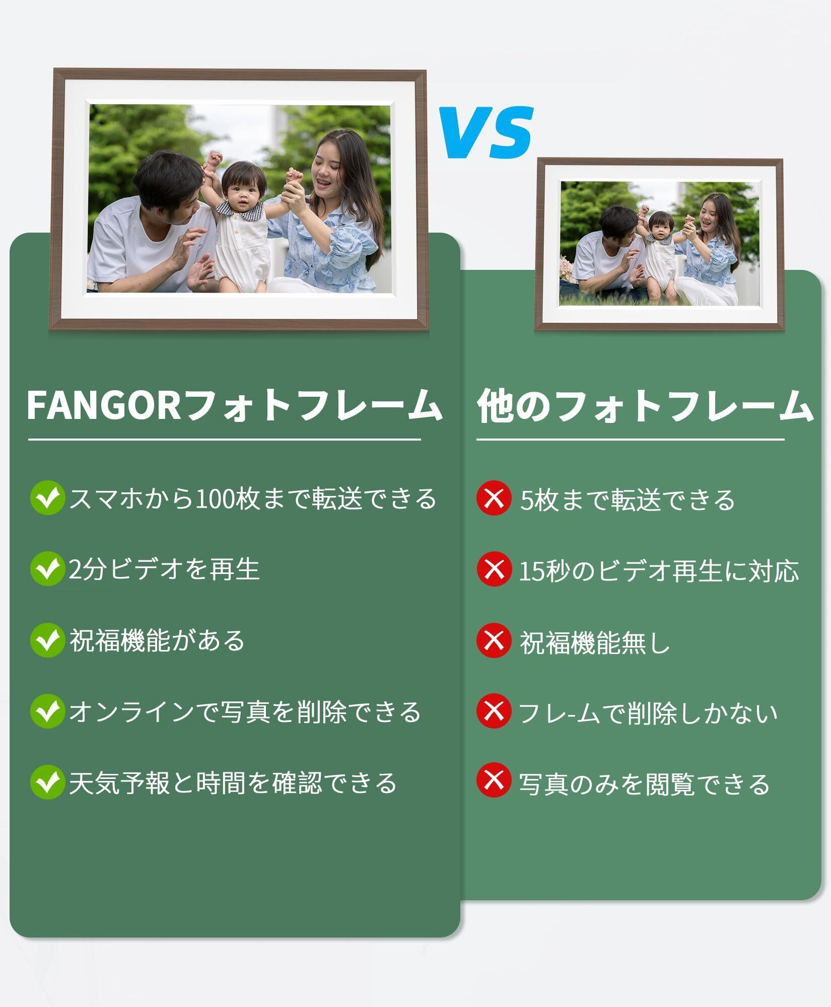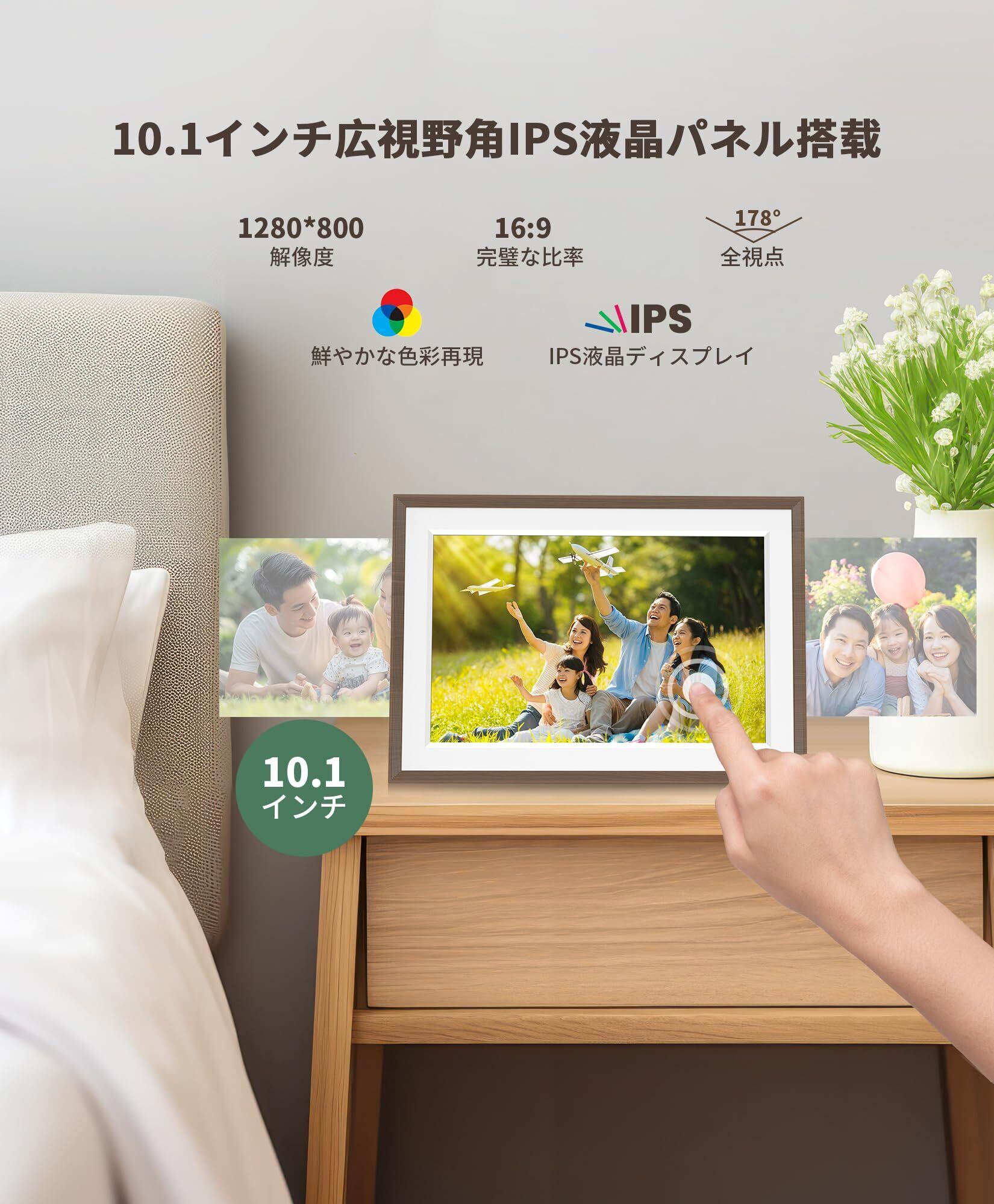 FANGOR デジタルフォトフレーム Wi-Fi 10.1インチ 1280*800解像度 32GB内蔵 SDカード拡張可 写真/動画/天気予報 スライドショー 誕生日 母の日 父の日 敬老の日 初心者向け ブラウン木目フレーム | BASE SHOP