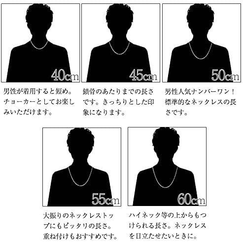 四角いパーツをあずきチェーンのように連結させたデザインです。輪同士の間隔が詰まっているのでスタイリッシュに見えます。また、長さ45cmのチェーンはネックレスの定番の長さです。女性のデコルテを美しく見せてくれる長さで、カジュアルなコーデにも、ビジネスコーデにも、幅広く合わせられます。どの長さにすればよいか迷ったら、45cmを選べば間違いありません。