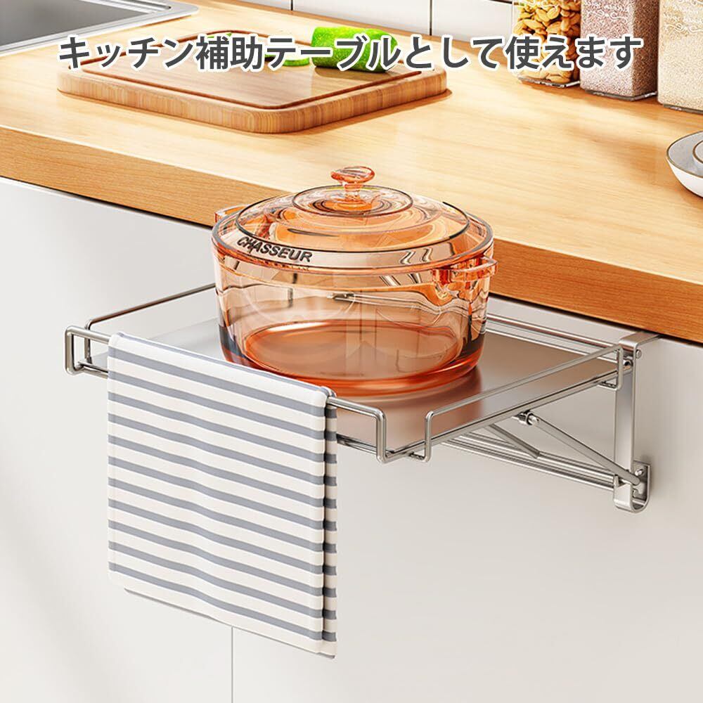 karyuuu キッチン作業台 補助テーブル 折りたたみ式 卓上置物棚 収納 キッチン タオルハンガー 引掛け式 台所用 省スペース 収納が便利 ステンレス収納ラック (シルバー) 31cm x 25cm x 11cm