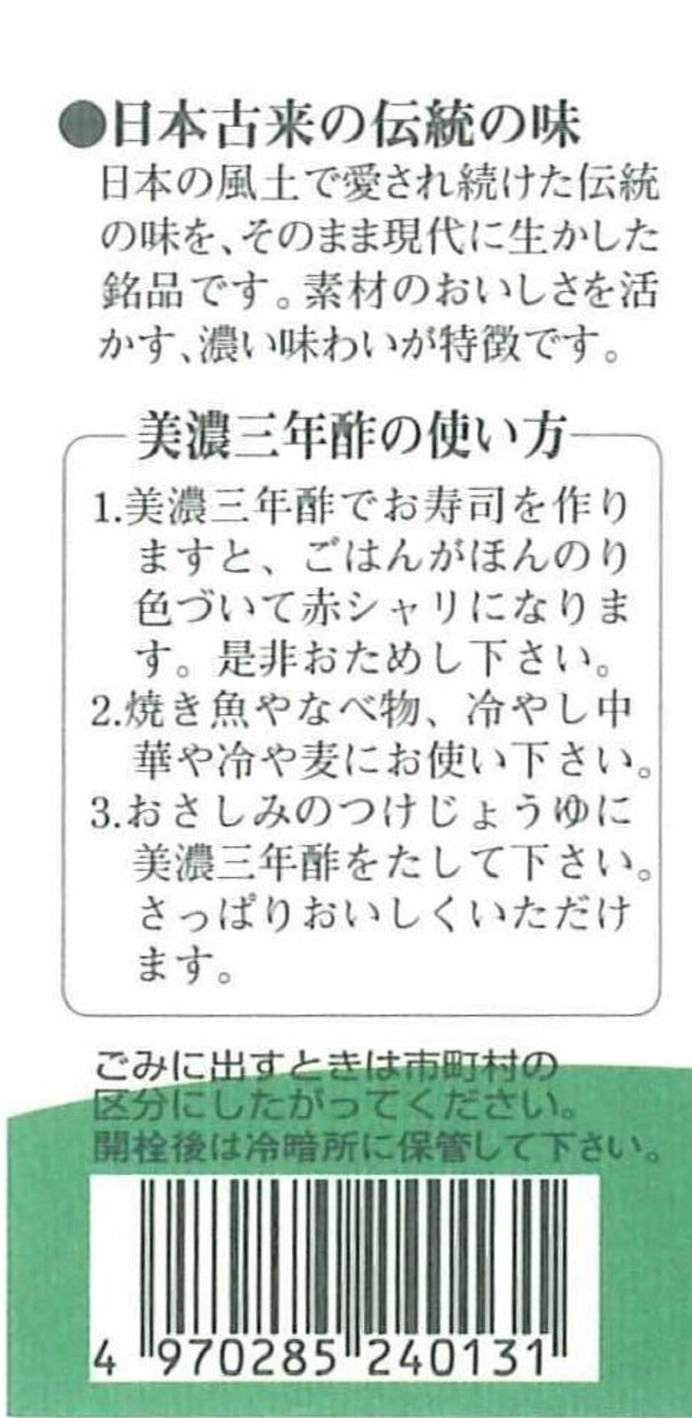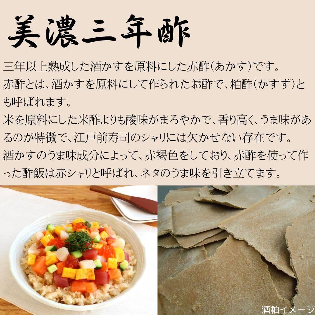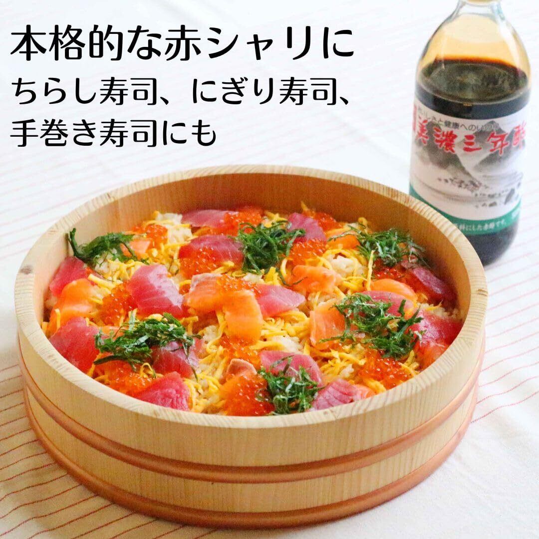 熟成した酒かすのみを原料にした深い旨みを持った粕酢です。赤酢とも呼ばれる粕酢し酢飯にもよく合います。