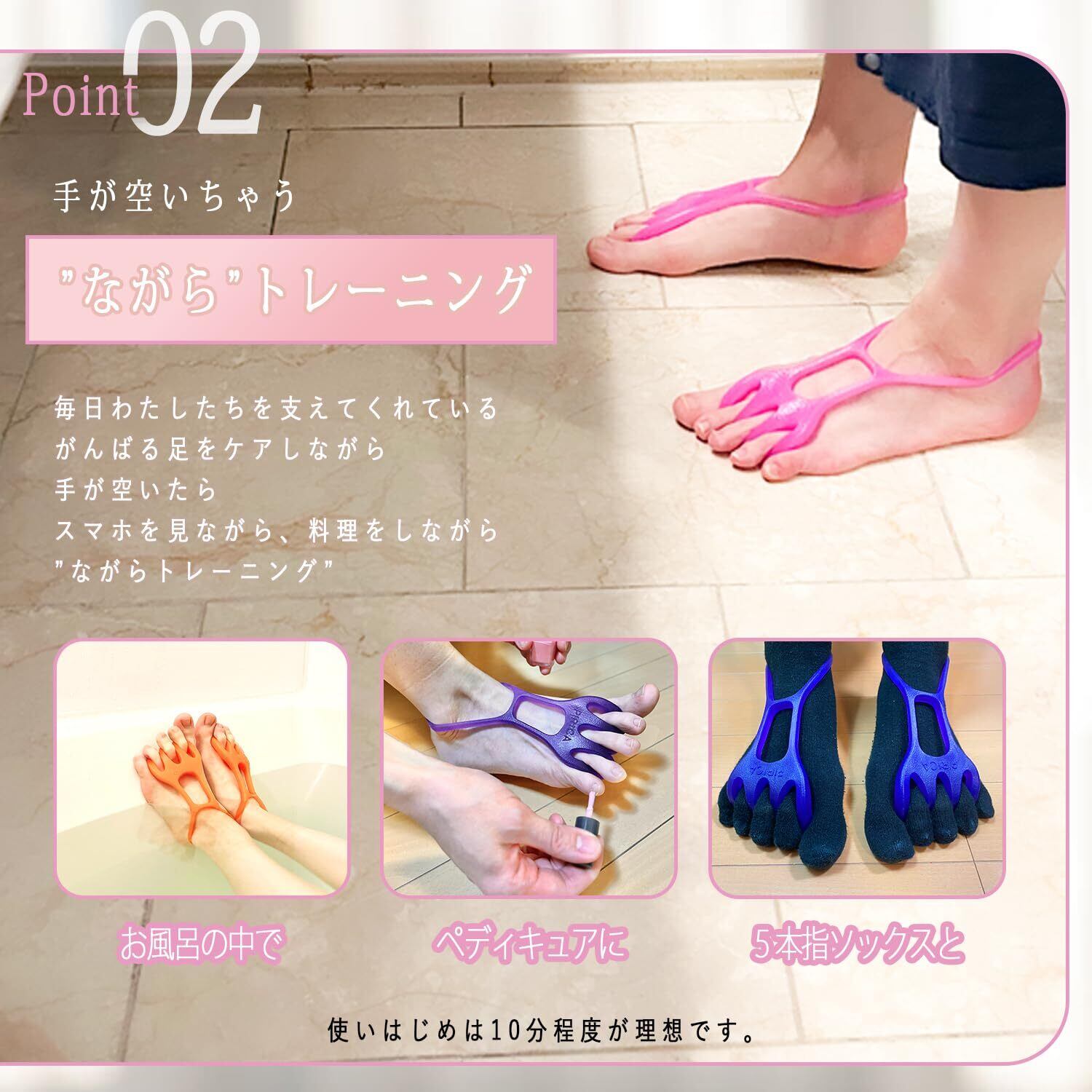 【スッキリした足に】足は立って・歩いて・座ってと寝ている時以外は体を支え続けています。足指を広げて足指と足裏のエクササイズを行うことでスッキリ健康的な足に◎