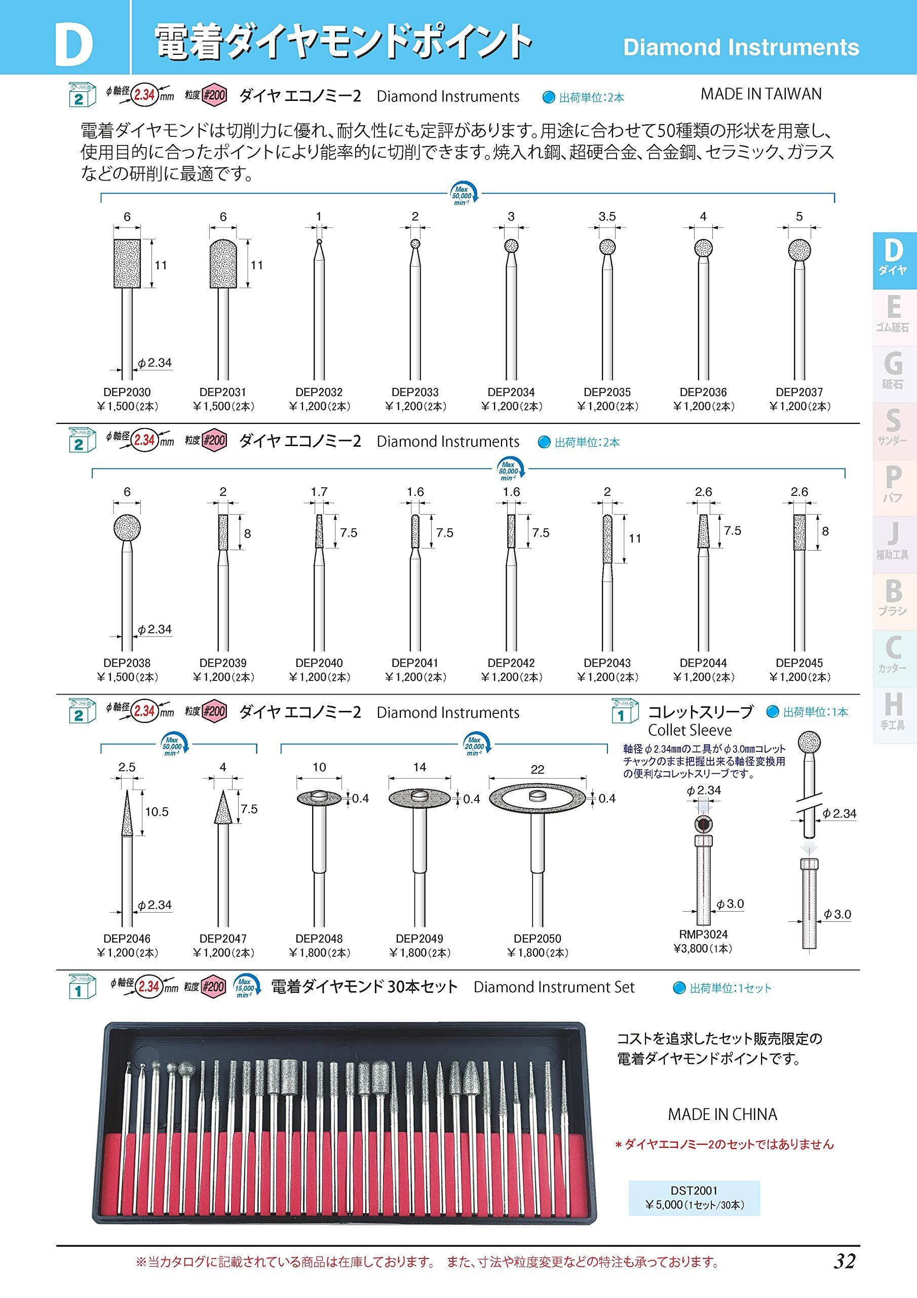 アルゴファイル(Argofile) 電着ダイヤモンドビット シリンダ型 5.5φ x 11mm 2本入 DEP2052#200 軸径2.35φ