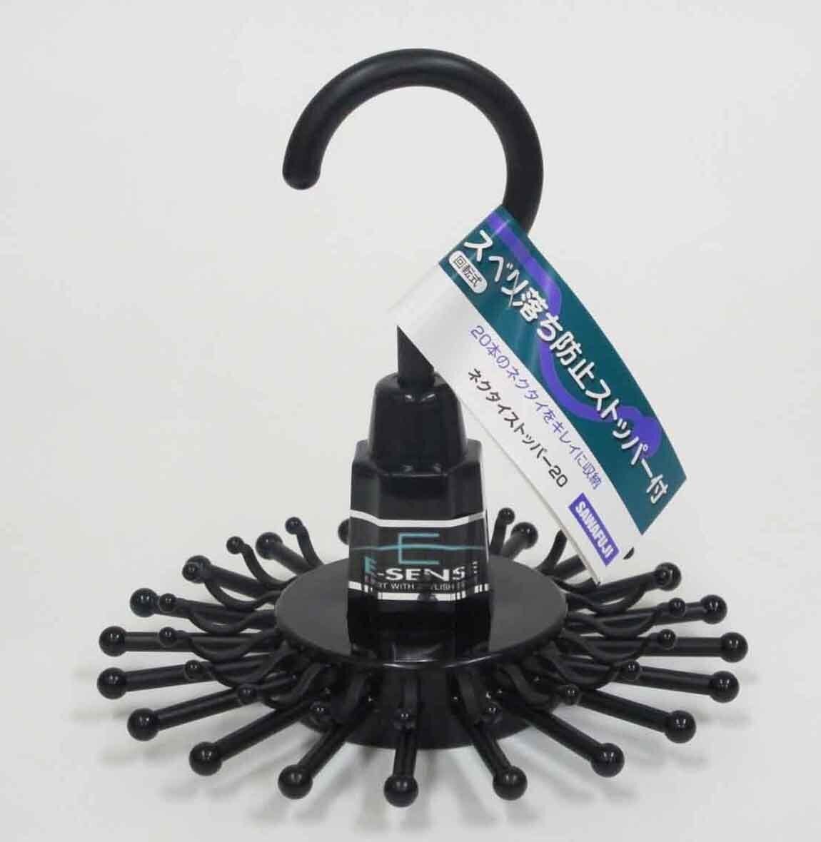 サワフジ ネクタイハンガー E-SENSE ネクタイストッパー20 ブラック 20本掛け 2個組 日本製 省スペース 回転 滑らない ストッパー付 収納 クローゼット コンパクト 小物 スカーフ ベルト NS-20-2P | BASE SHOP