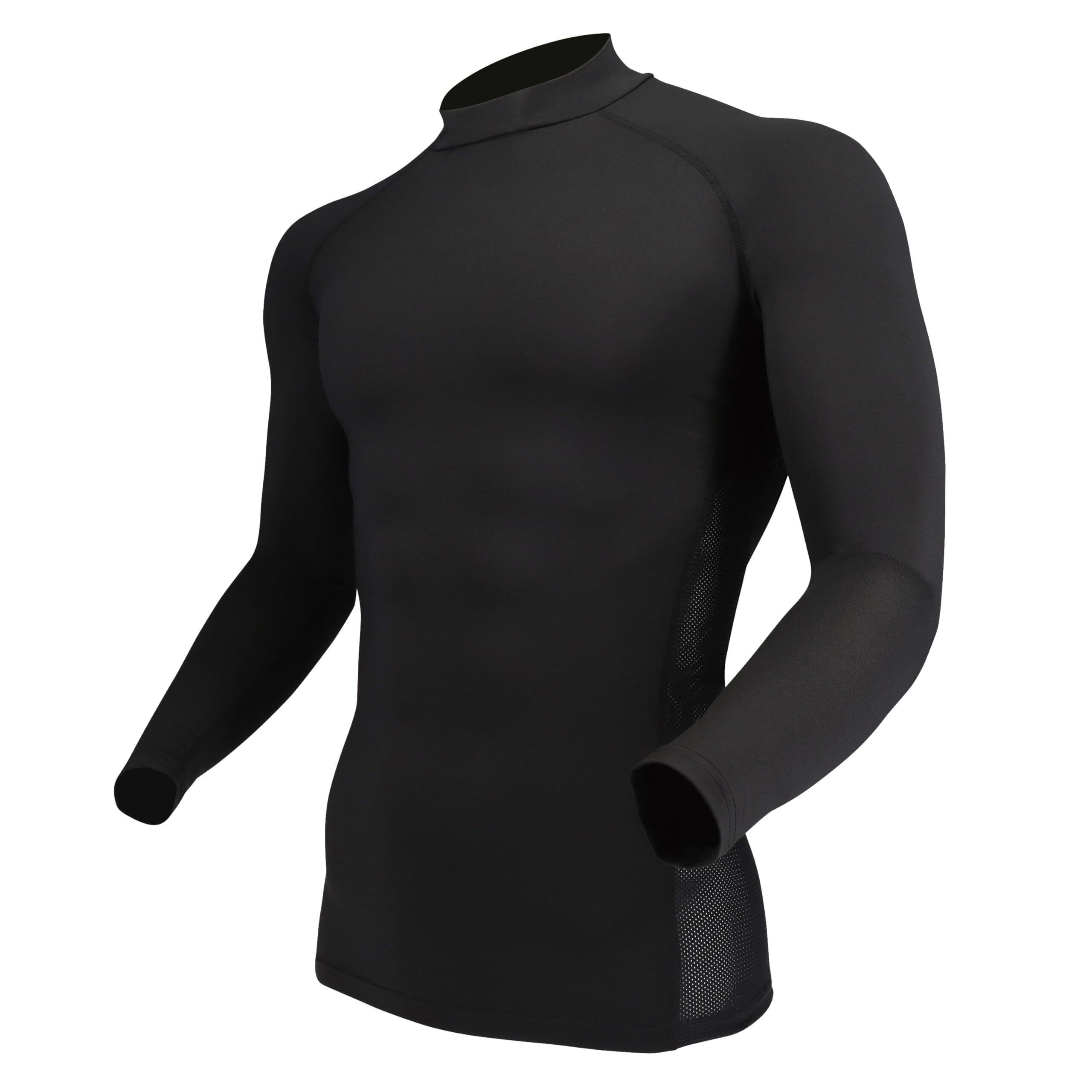 【Amazon.co.jp限定】おたふく限定ステッカー付 おたふく手袋 夏用インナー 長袖 ハイネック [接触冷感 吸汗速乾 消臭 コンプレッション UVカット メンズ] JW-625 ブラック Lサイズ 【1枚入り】 | BASE SHOP