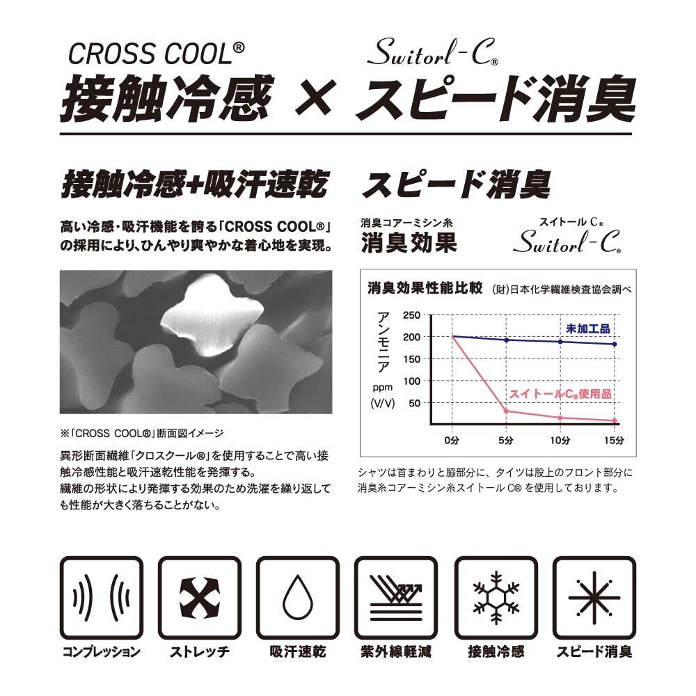 接触冷感と吸汗速乾に優れた「CROSS COOL」を使用。繊維の形状による効果の為、洗濯を繰り返しても性能が大きく落ちることがなく、ひんやり爽やかな着心地が持続します。