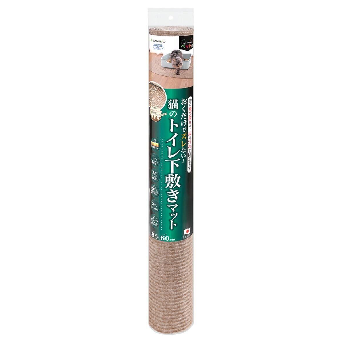 サンコー おくだけ吸着 猫 トイレ 下敷き マット ベージュ KX-54 60×85cm 厚み4.2mm ずれない ネコ砂 猫用 ネコ用 【日本製 消臭】