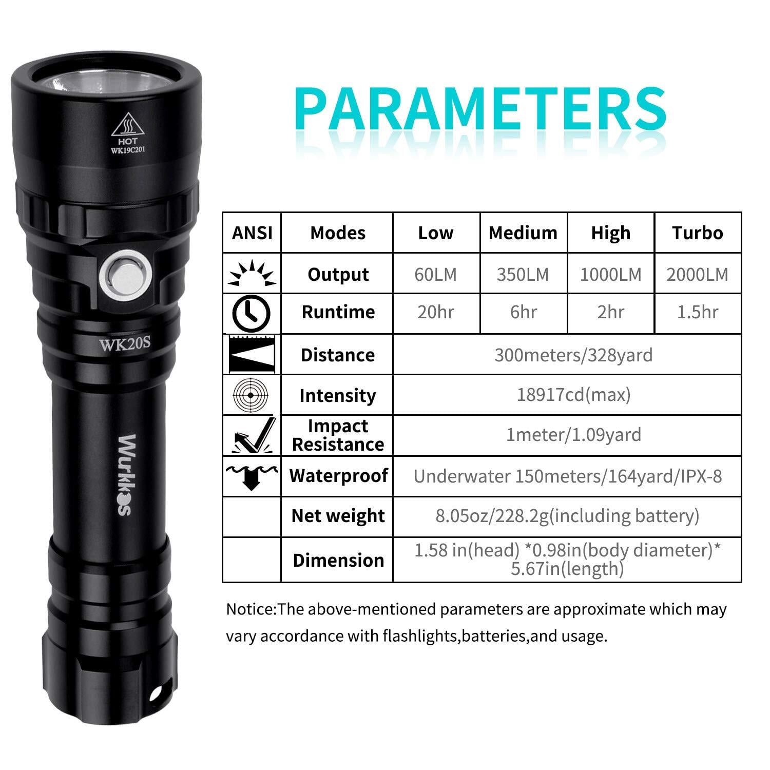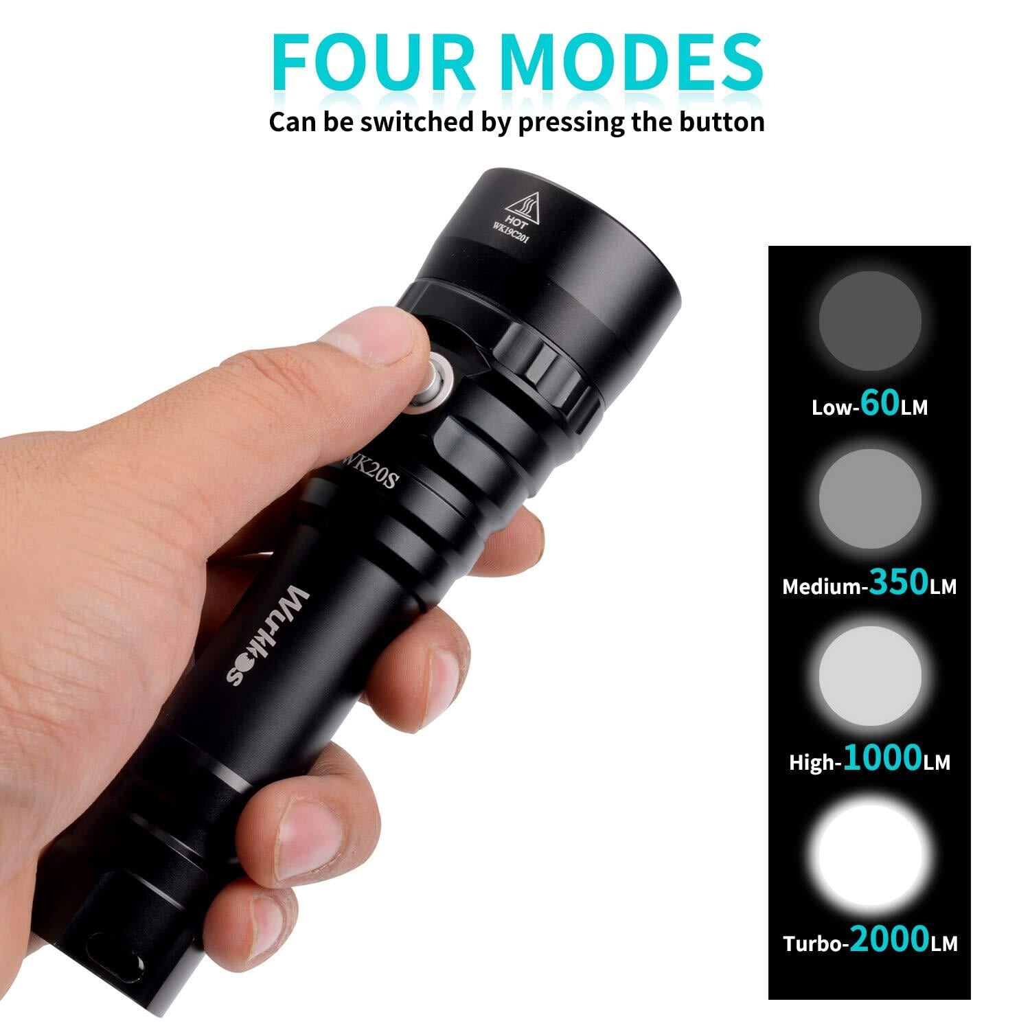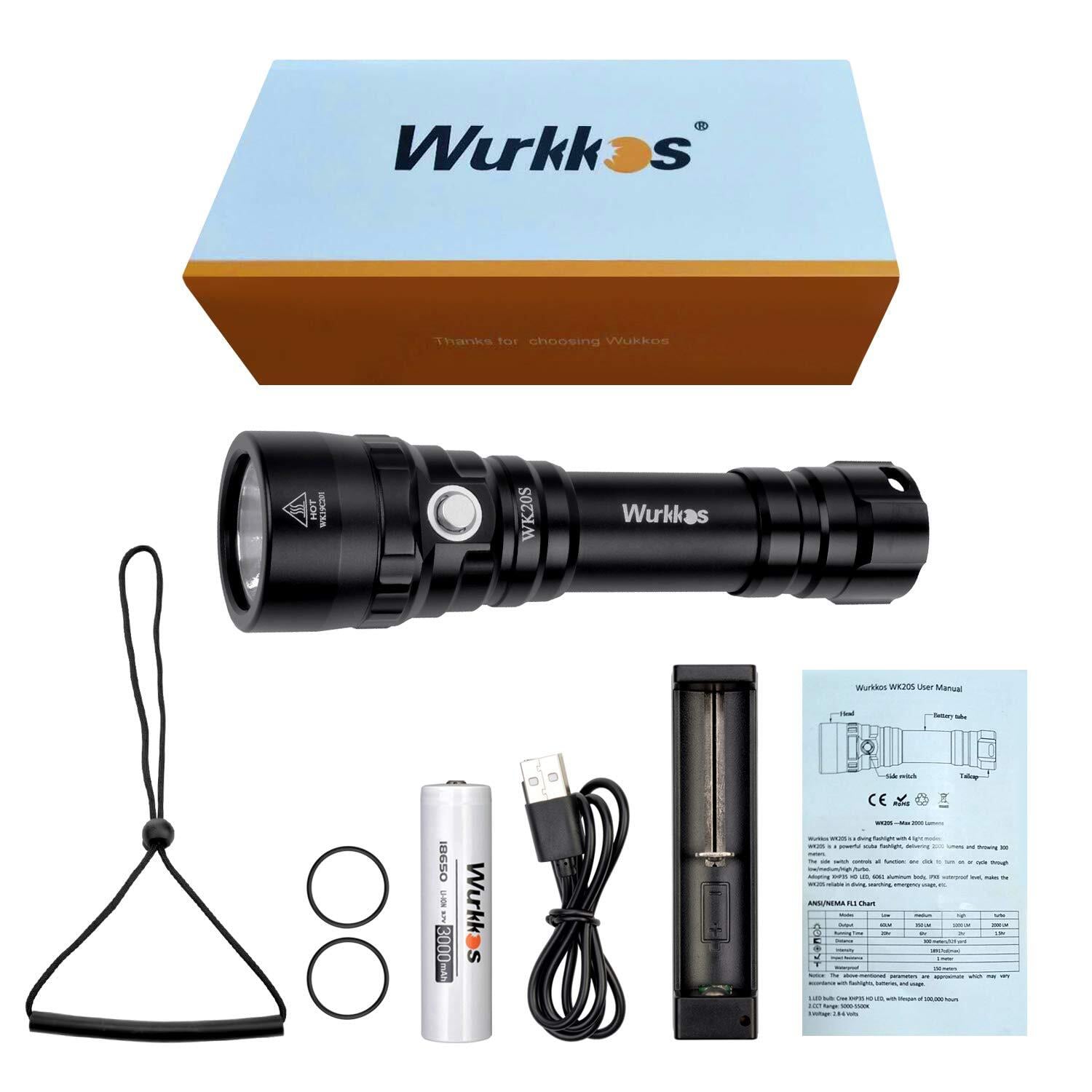 Wurkkos WK20S ダイビングライト・150メートル防水・ナイトダイビング・スキューバーダイビングライト・18650バッテリー付き(2000ルーメン)