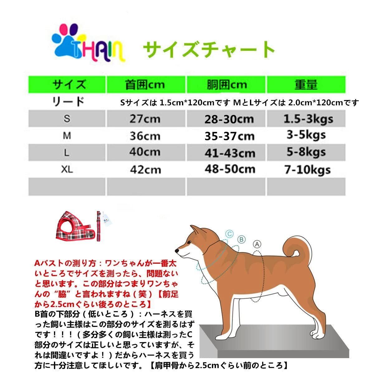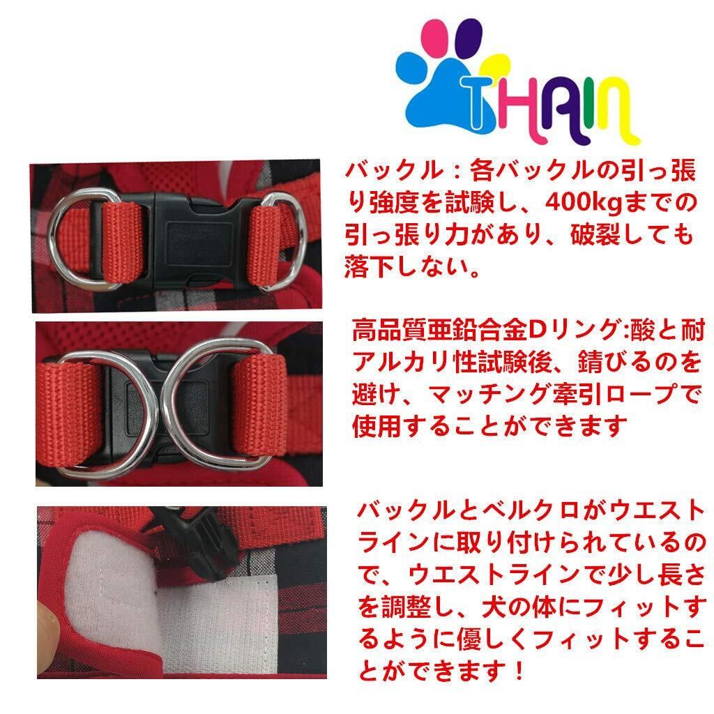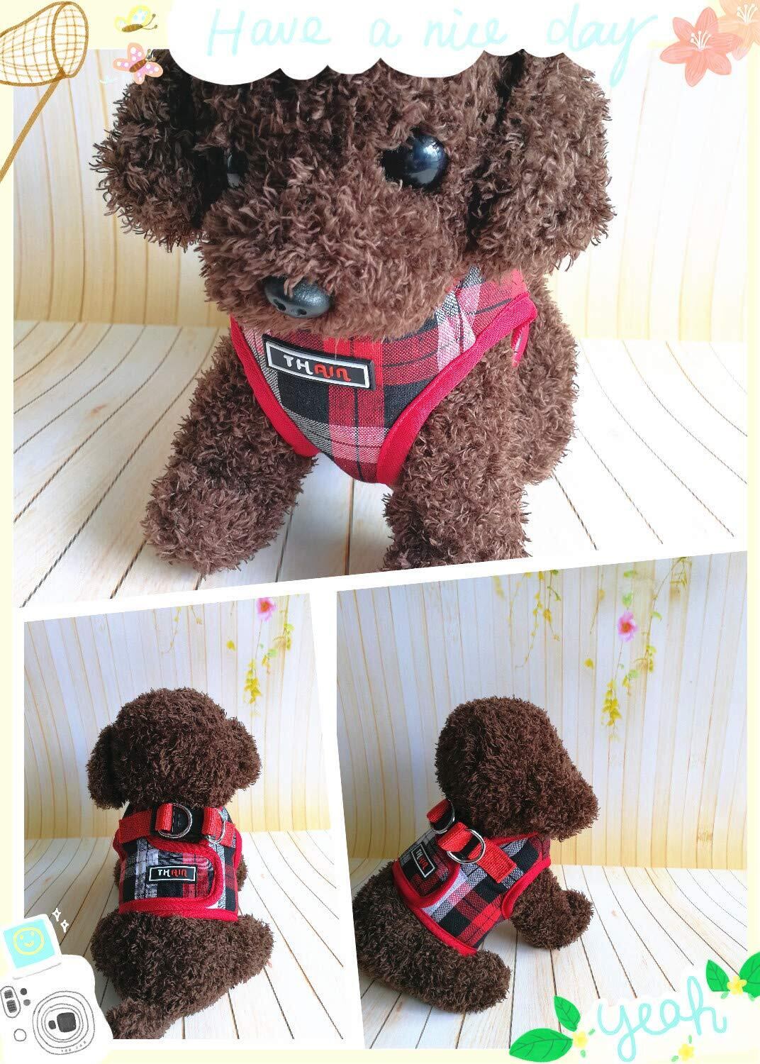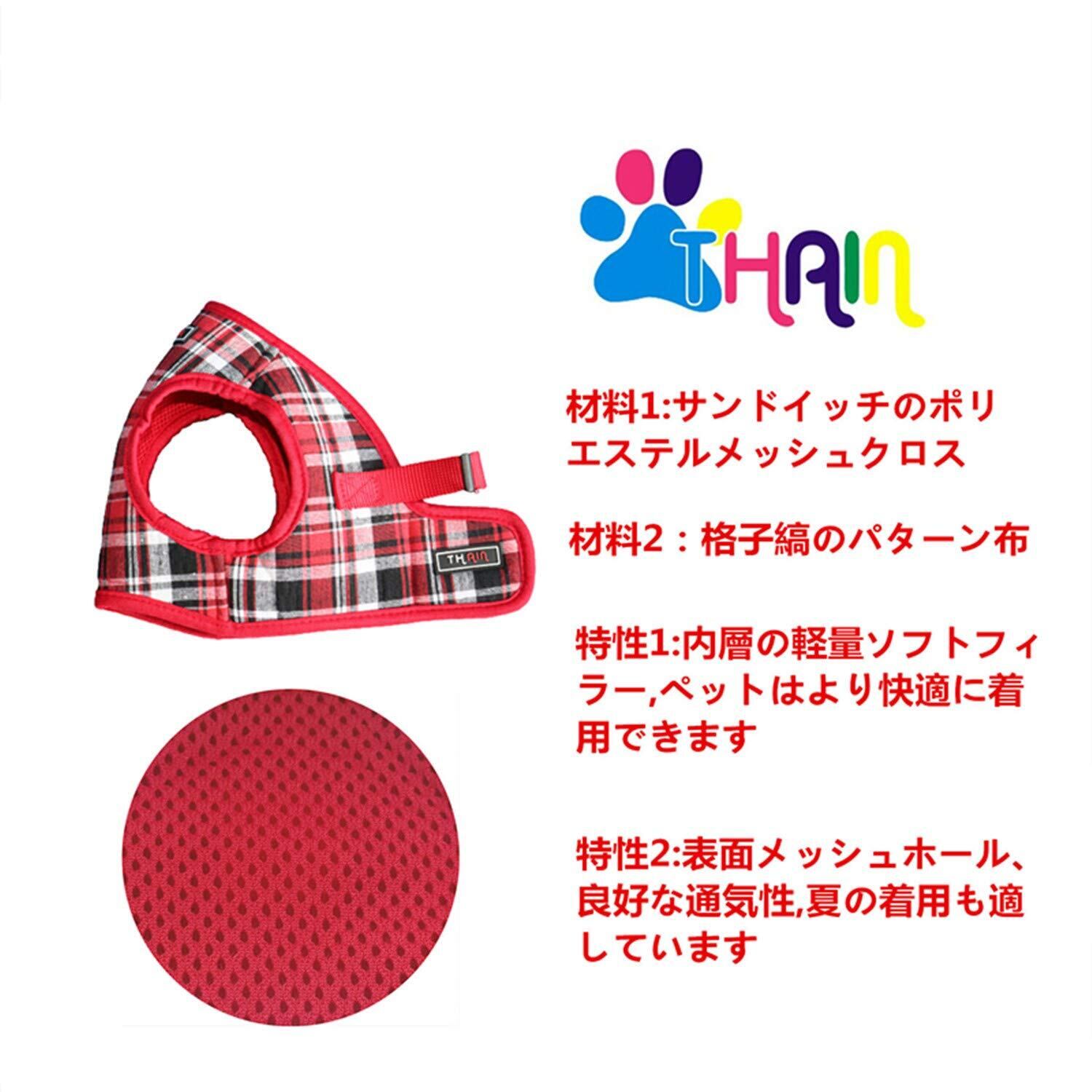 THAINハーネス・リード 3-5kgs 小型犬 ハーネス リードセット チェック 胴輪 メッシュ 犬 ハーネス 人気 格子縞 犬用ハーネス(M レッド)