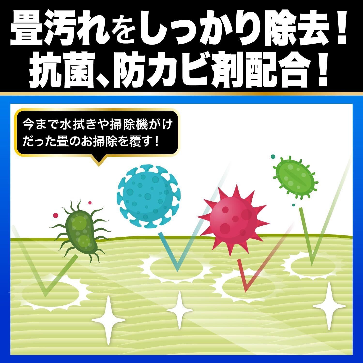 ●畳には、カビやホコリ、皮脂汚れやフケ、垢などの付着、食べカスやダニなどの死骸の残留などを汗ばんだ足などで踏み固めていくとても不衛生な汚れです。●畳汚れ職人はこの汚れに素早く浸透し、浮かせて落とす畳専用洗剤です。●洗剤の残留成分もバクテリアの発生源となるため畳洗剤は開発されませんでした。●しかし本商品は抗菌、防カビ成分配合を配合しているので、汚れを落としつつメンテナンスのできる優れた畳専用洗剤です