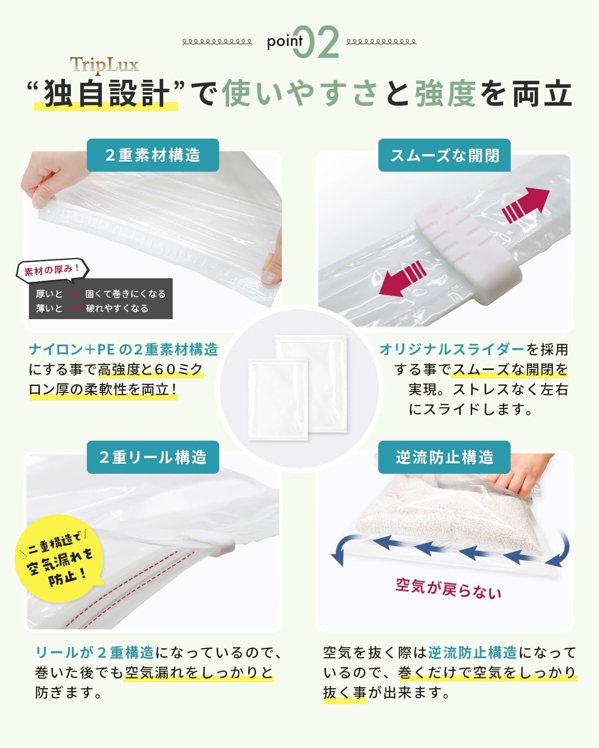 掃除機や専用吸引機不要で簡単手巻きで高圧縮!