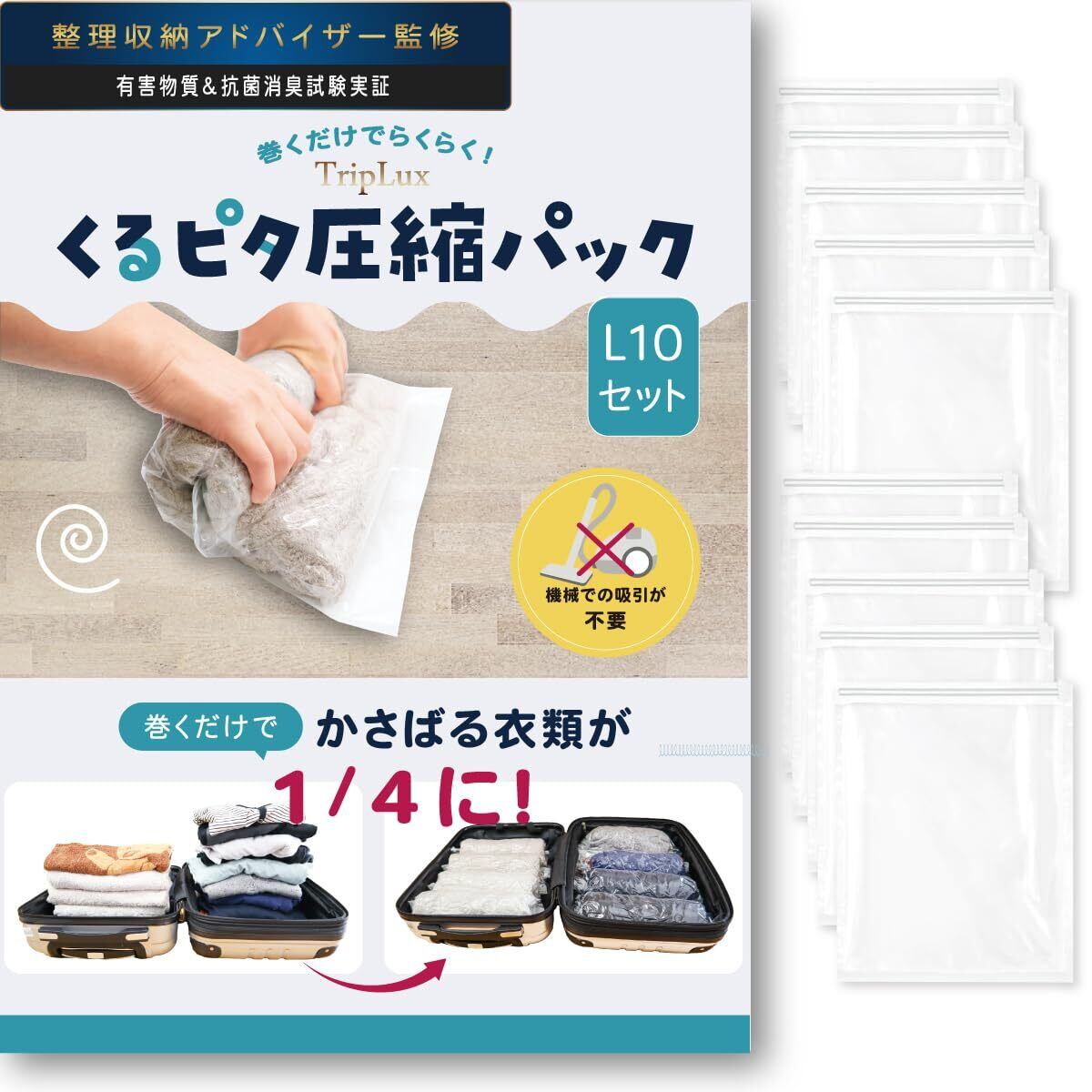 【収納のプロが監修】巻くだけらくらく衣類圧縮袋10枚セット【旅行にも自宅収納にも◎】TripLuxくるピタ圧縮パック(掃除機不要) 圧縮袋 出張 手巻 トラベルグッズ (L10枚)