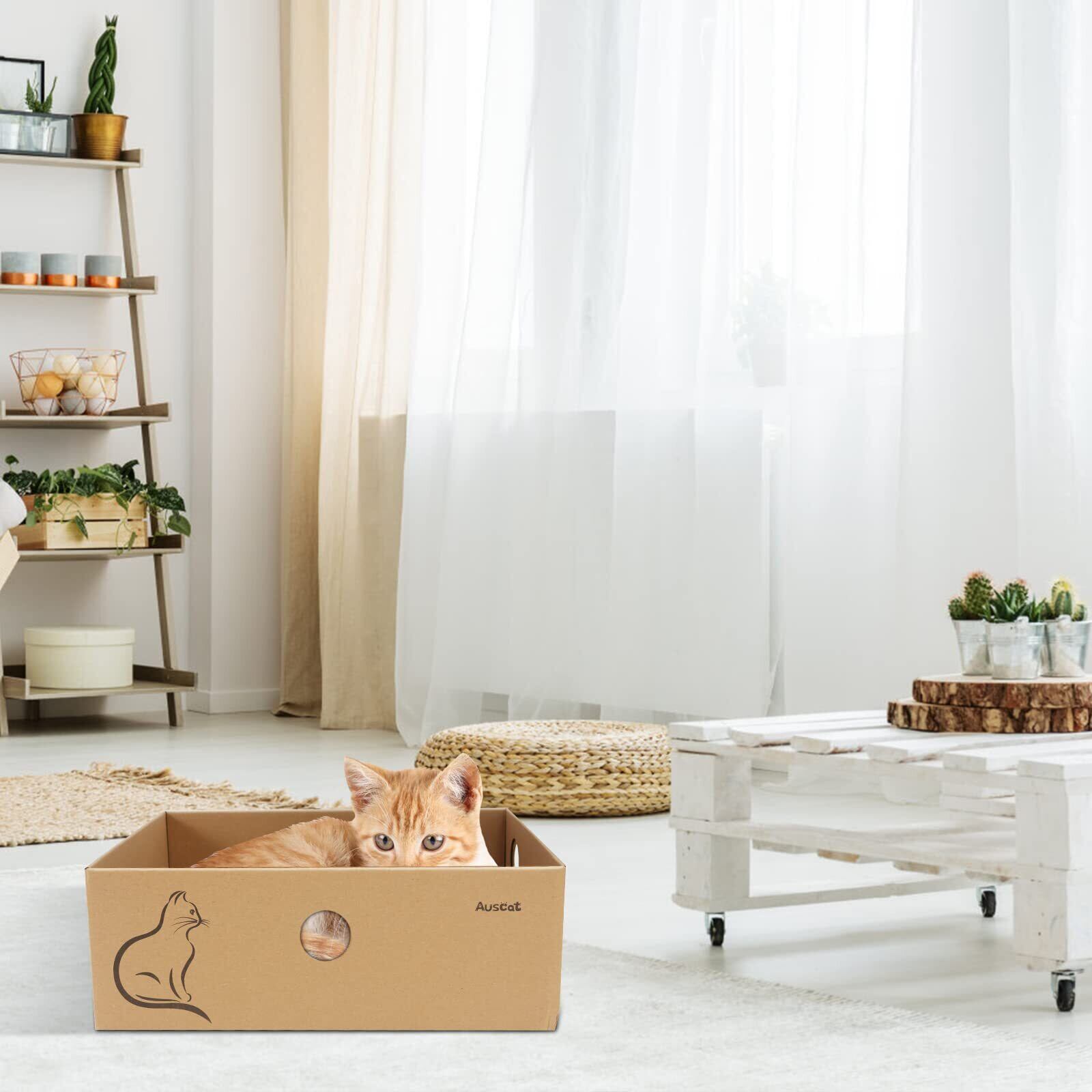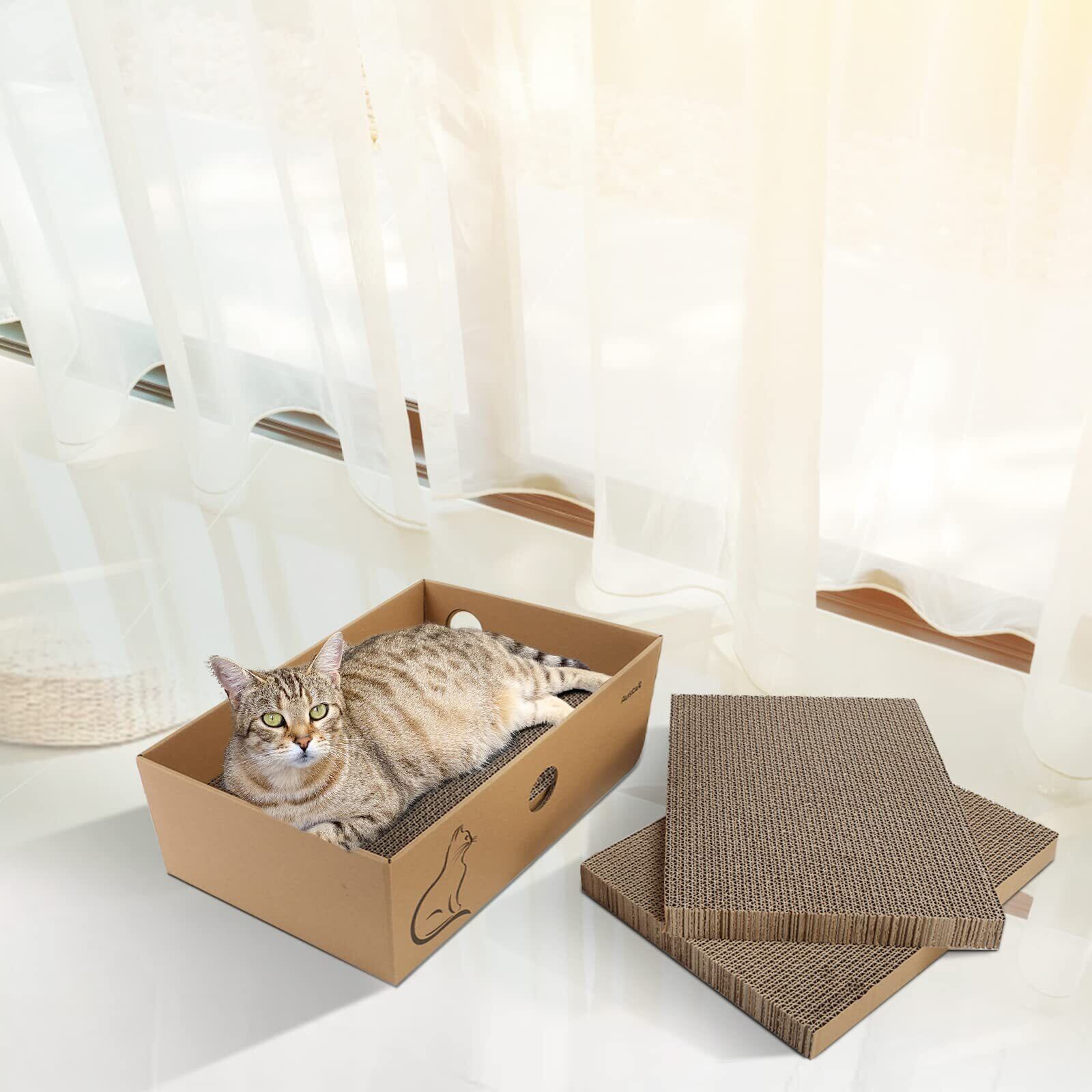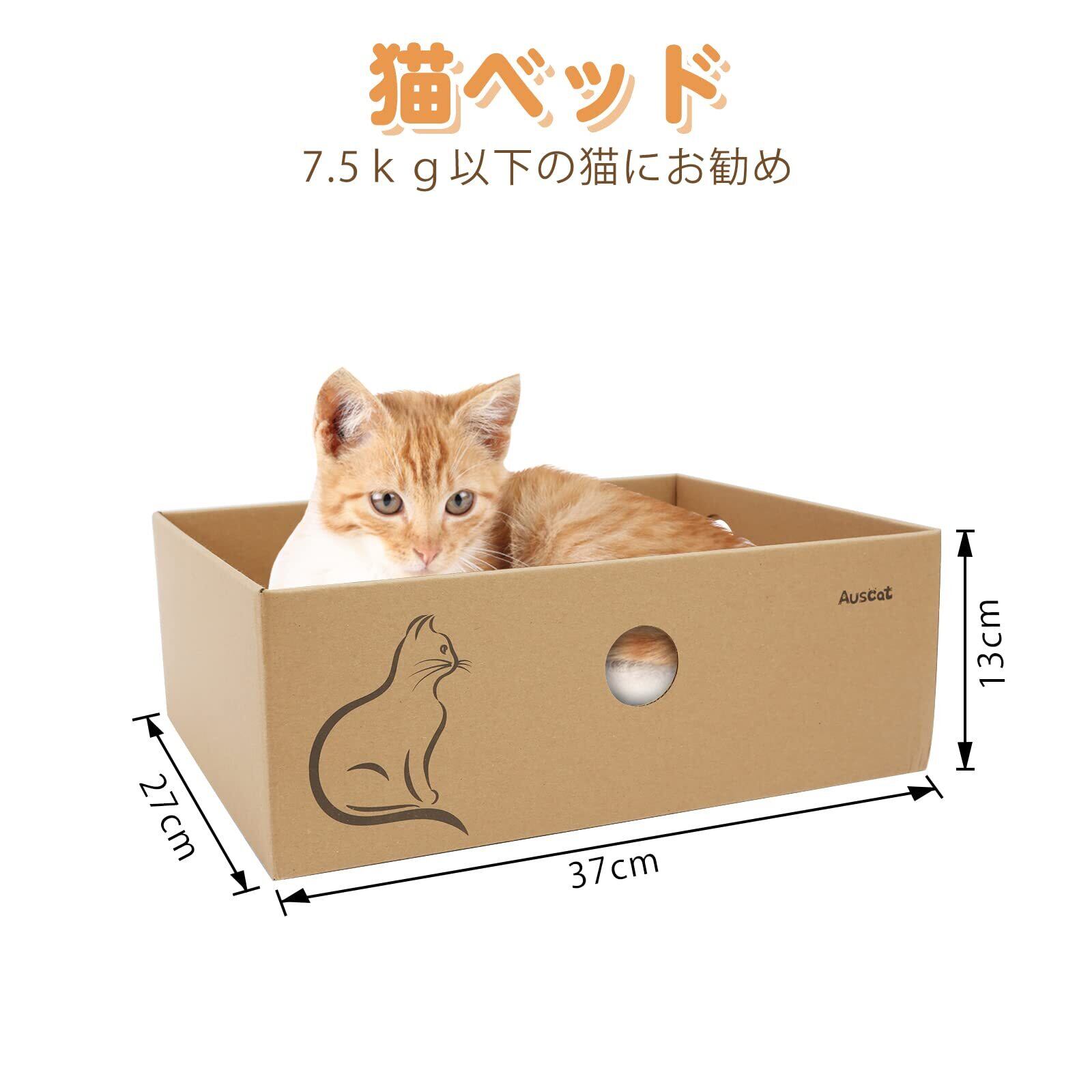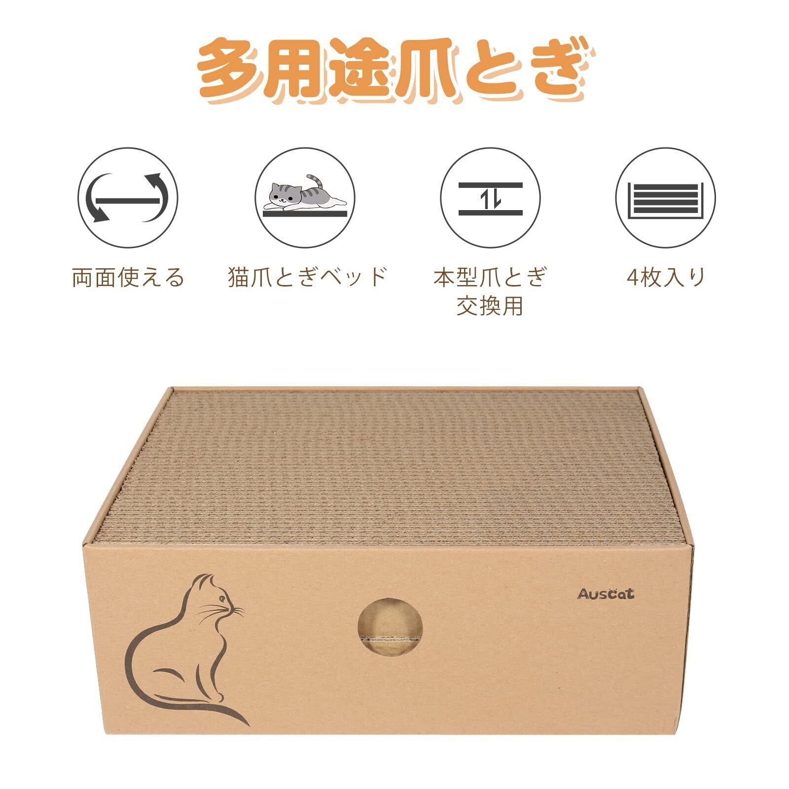 AUSCAT 猫爪とぎ 猫用段ボールつめとぎ 取り換え用爪研ぎ4枚入り 猫ベッド兼用 箱型 37×27×13CM