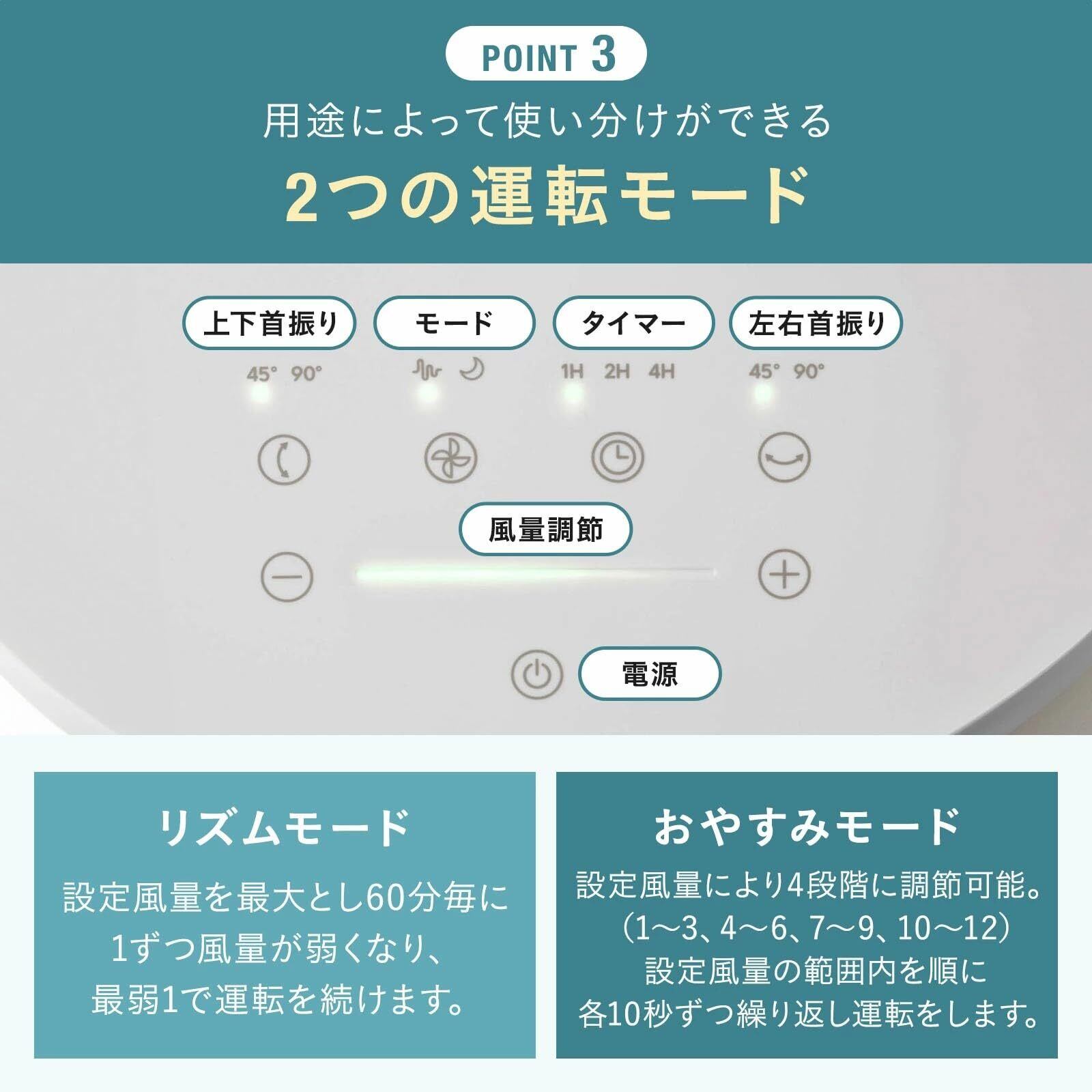 上下左右に首振りし、ソフトな微風からパワフルな強風までお好みで調節できる風量は12段階