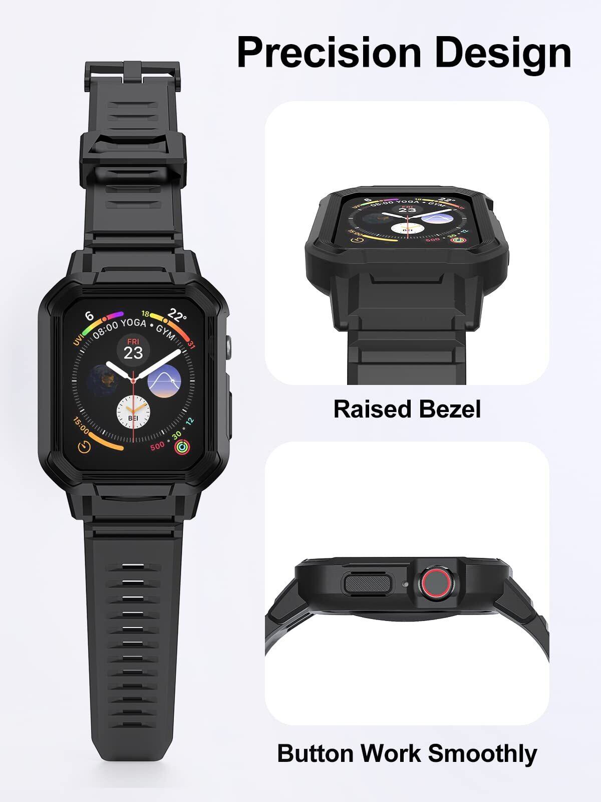 [LVFAN] コンパチブル Apple Watch バンド 42mm 44mm 45mm 一体型 ケース付き アップルウォッチ用 バンド スポーツ バンド TPU ミリタリー保護 エッジ保護 耐衝撃 傷防止 Apple Watch シリーズ 8 7 6 5 4 3 2 1 SE対応 2枚入り (ブラック)