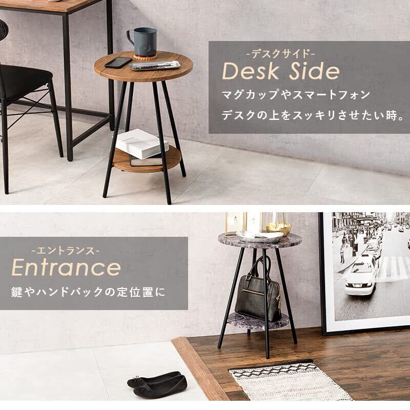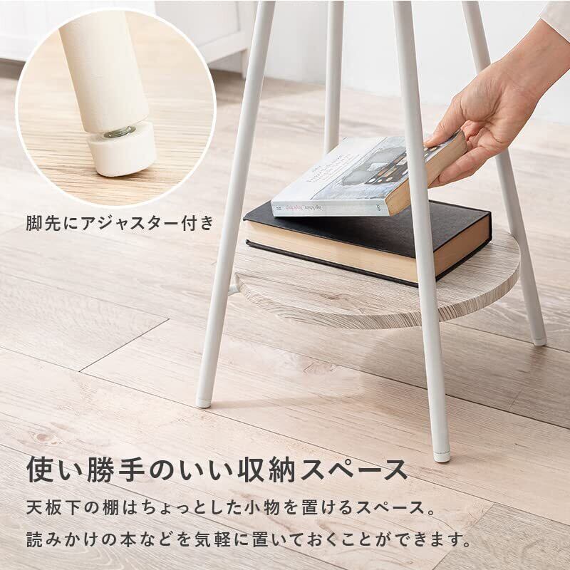 【気軽に"ちょい置き"テーブル】:直径40cmの天板はソファやベッド横など、場所を選ばずに気軽に置けるちょうどいいサイズ感。ここにちょっとテーブルが欲しいなぁ、そんな要望にお応えするサイドテーブルです。