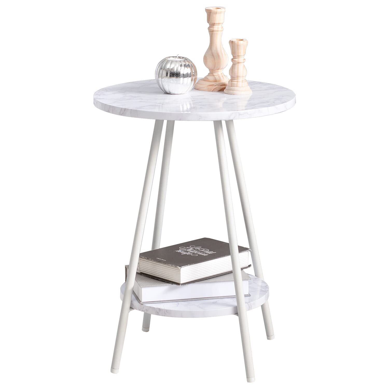 萩原(Hagihara) サイドテーブル 丸型 机 ナイトテーブル ソファサイドテーブル 耐水 軽量 約3kg 大理石調 モダン 幅40×奥行40×高さ54 ホワイト LST-4660MWH | BASE SHOP