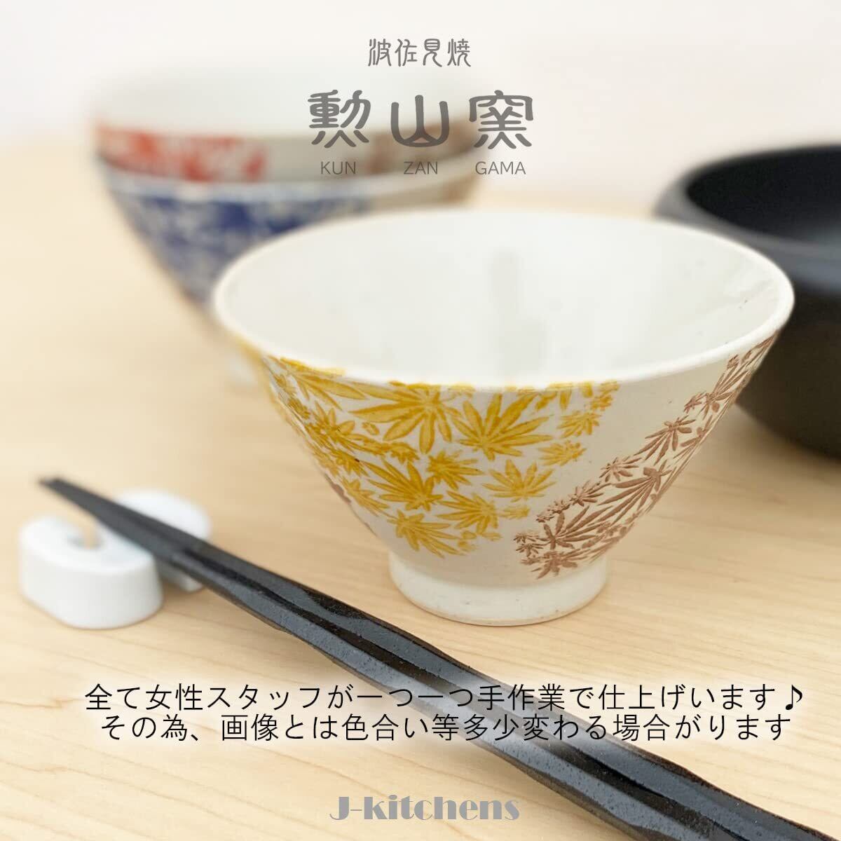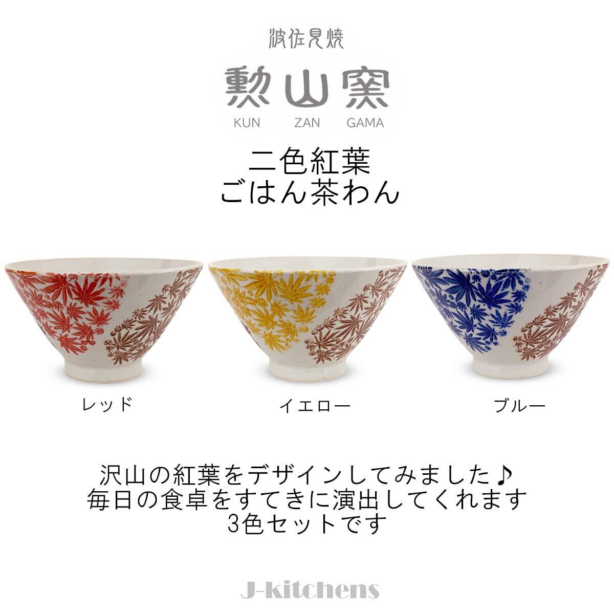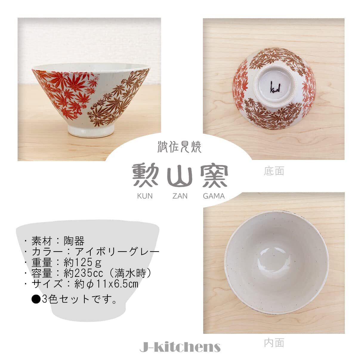 ジェイキッチンズ 勲山窯 茶碗 3個セット直径 11cm 高さ 6.5cm 二色 紅葉 波佐見焼 日本製