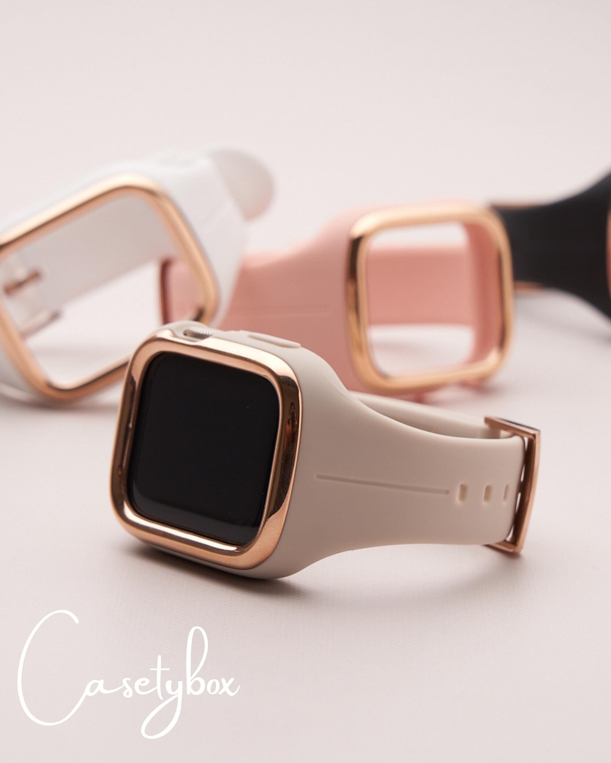 スマートフォンアクセサリーブランド CASETYBOXからシリコン素材の一体型アップルウォッチバンドが登場。本体カバーにゴールドラインのデザインを採用し高級感を演出。女性の手首に馴染みやすいよう本体部分からバンドにかけてなめらかな曲線を描くデザインで仕上げ、柔らかいシリコン素材を使用しより快適にご使用いただける一体型バンドに仕上げました。くすみカラー中心のカラー展開で、シーンを選ばずお使いいただけます。