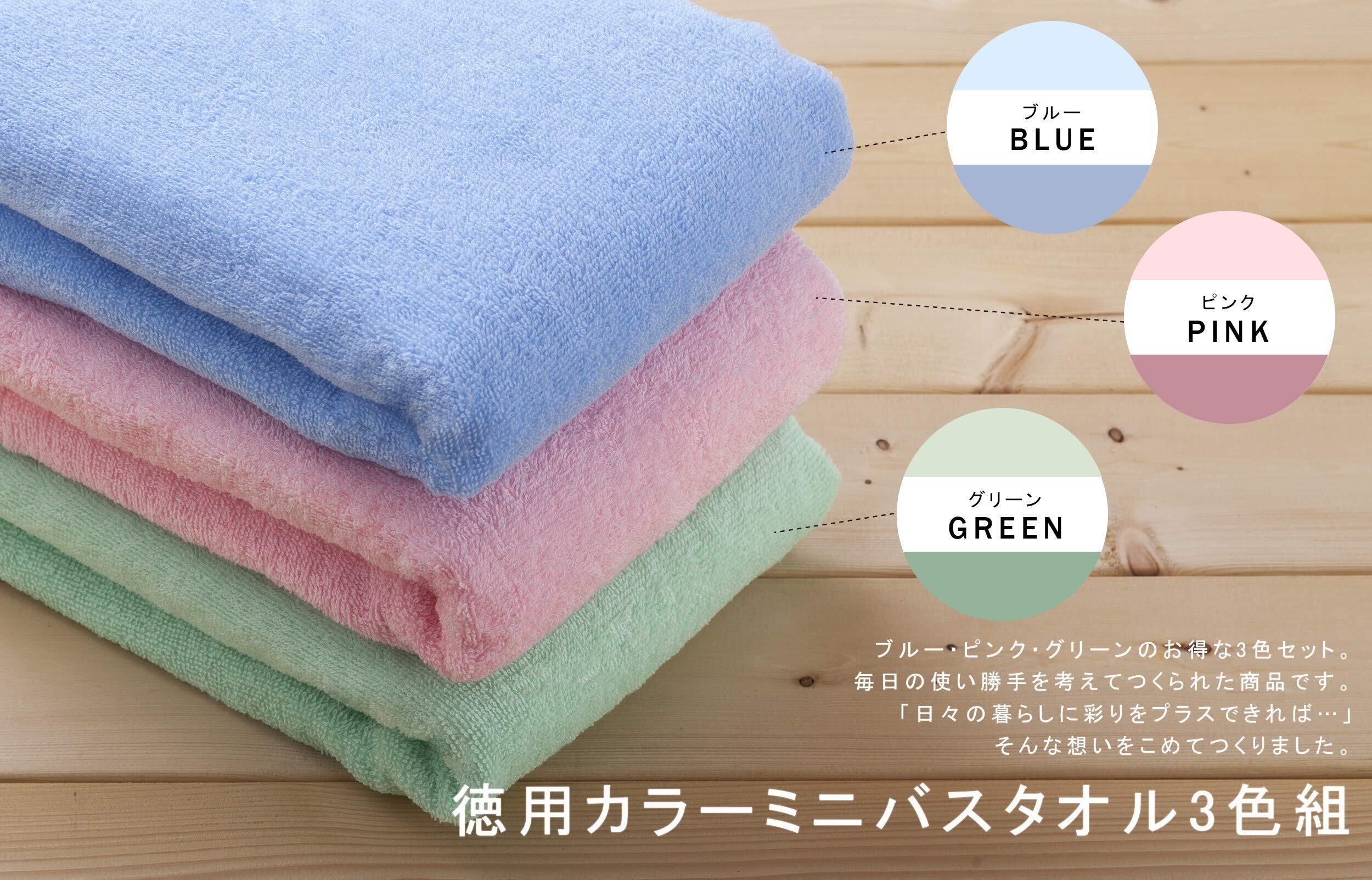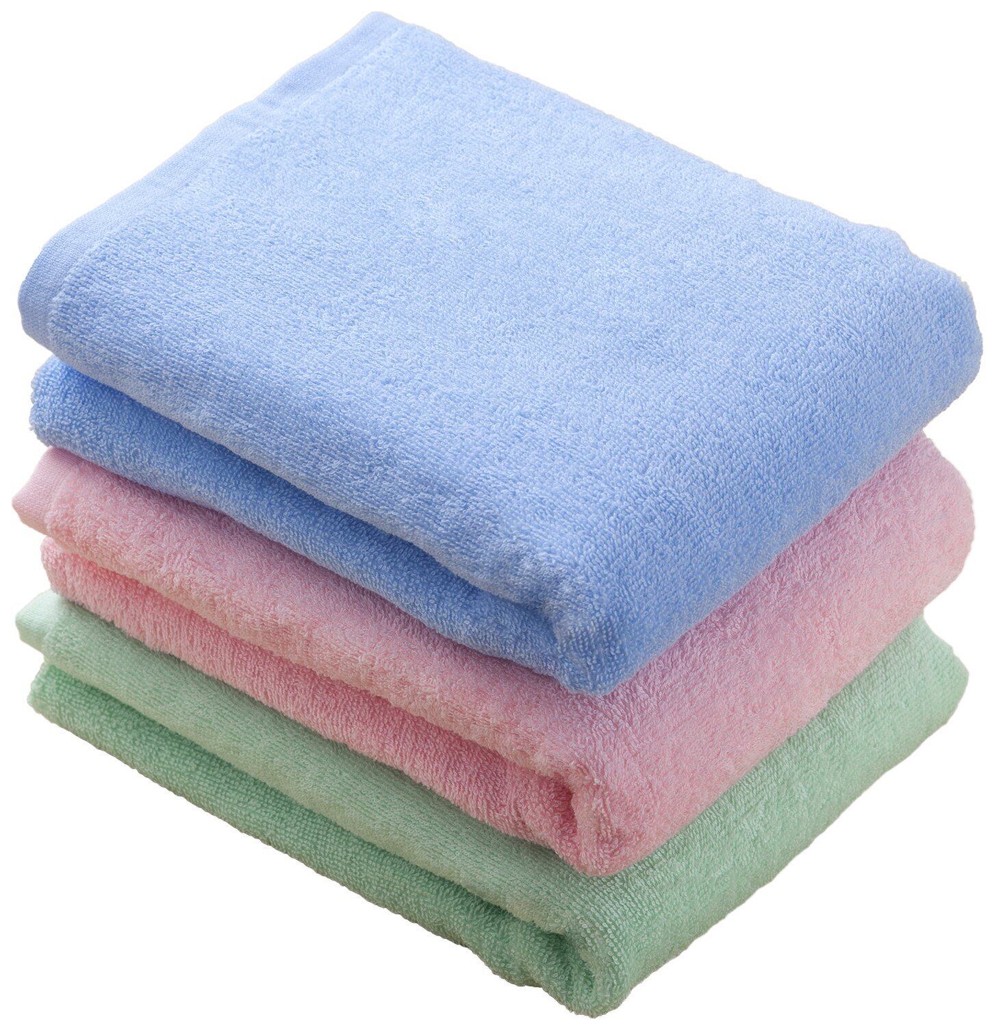 コスギゼン(Kosugizen) バスタオル 3色 50×100㎝ 徳用カラー ミニサイズバスタオル(ピンク・ブルー・グリーン) 3枚入