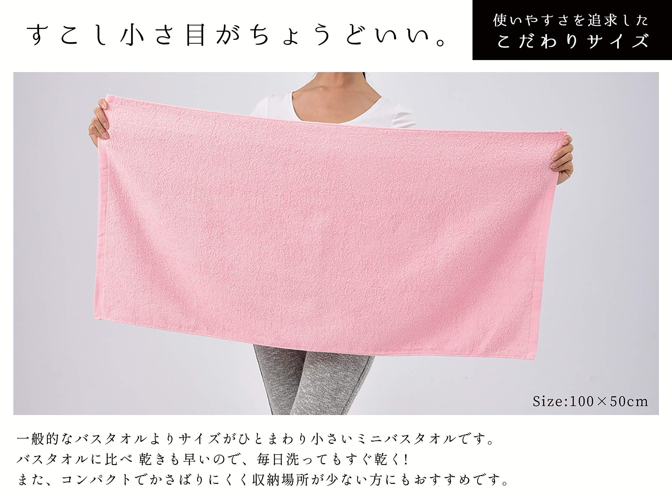 【便利サイズ】ちょっと小さなショートサイズのバスタオル。サイズ約50×100cm。