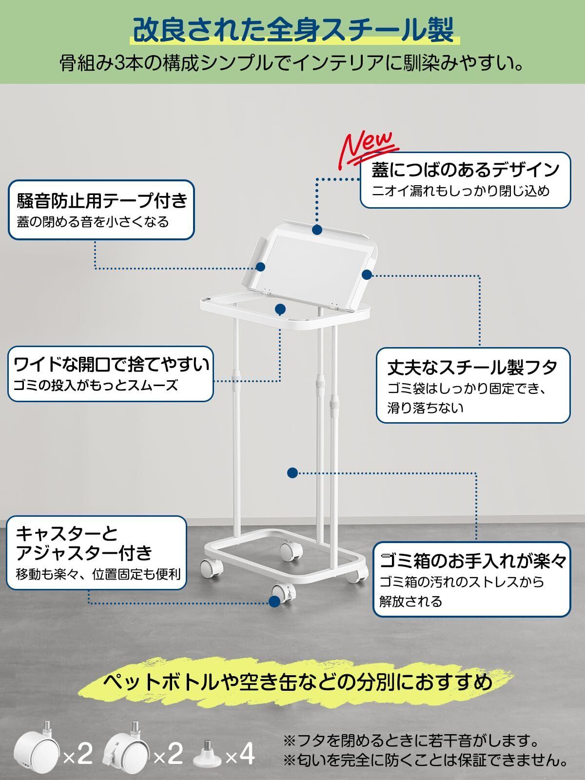 TTWO ゴミ袋ホルダー フタ付き 横開き 高さ調整W33.5×D22.5×H(47.5~81)cm ゴミ袋スタンド スリム 20L~90L対応 大容量 分別ゴミ袋ホルダー ワイドな開口 フレームゴミ箱 ダストスタンド レジ袋 ポリ袋ホルダー リサイクルスタンド 塵箱 ビニール袋 おしゃれ 簡易ゴミ箱 袋かけるだけ 取り換え簡単 キャスター・アジャスター付き (ホワイト) | BASE SHOP