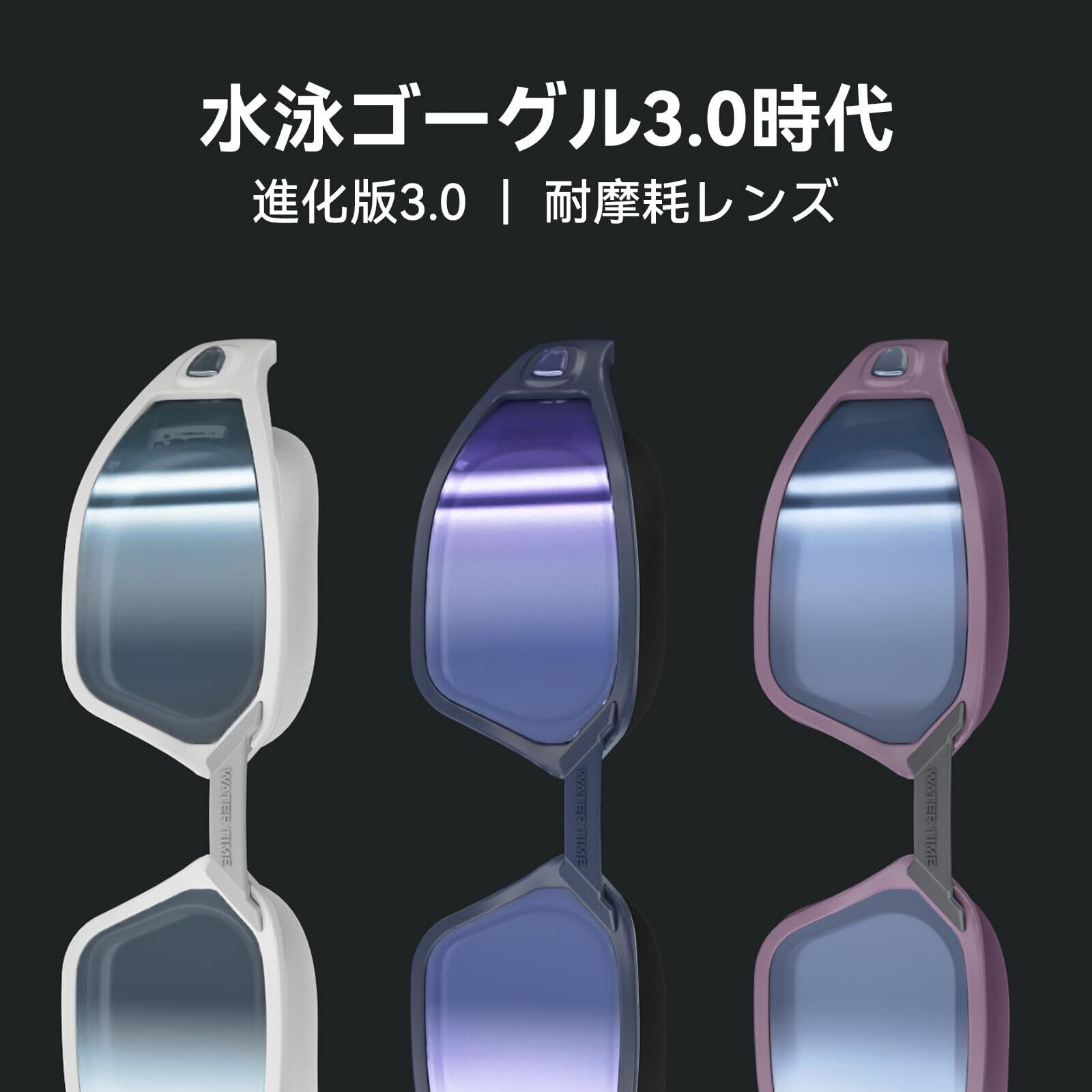 WATERTIME スイミングゴーグル 男女兼用 曇り防止 UVカット 防水 超柔軟シリコンパッド 屋内・屋外兼用 大フレーム 快適フィット