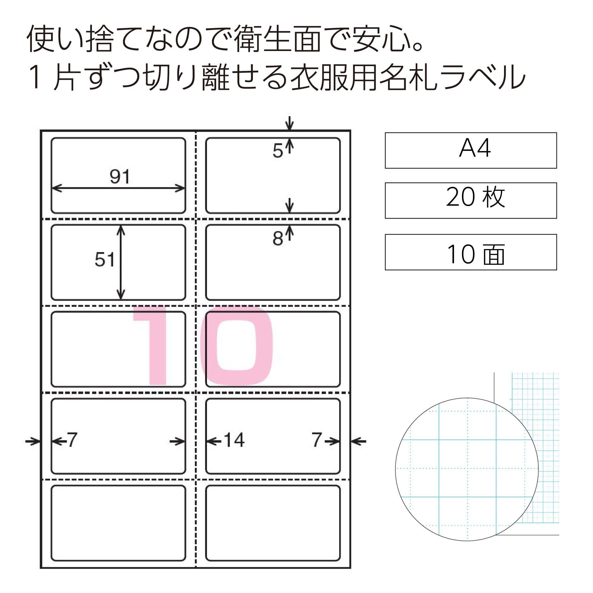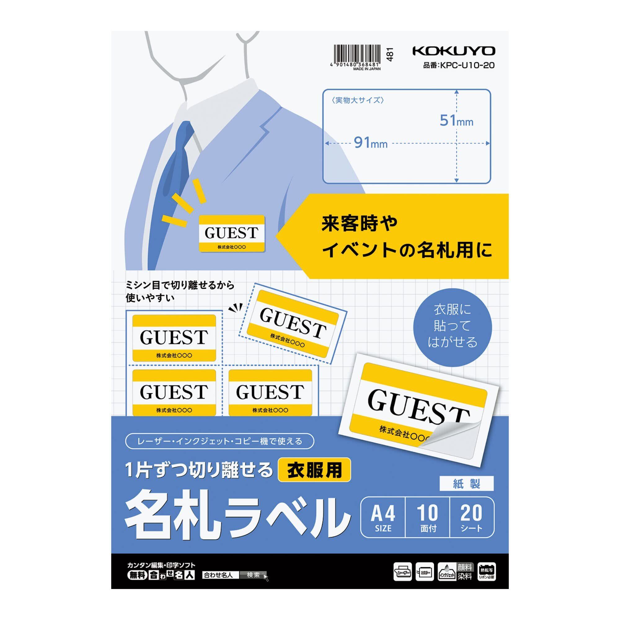 コクヨ(KOKUYO) ラベルシール 1片ずつ切り離せる 衣服用 名札ラベル A4 10面 20シート KPC-U10-20