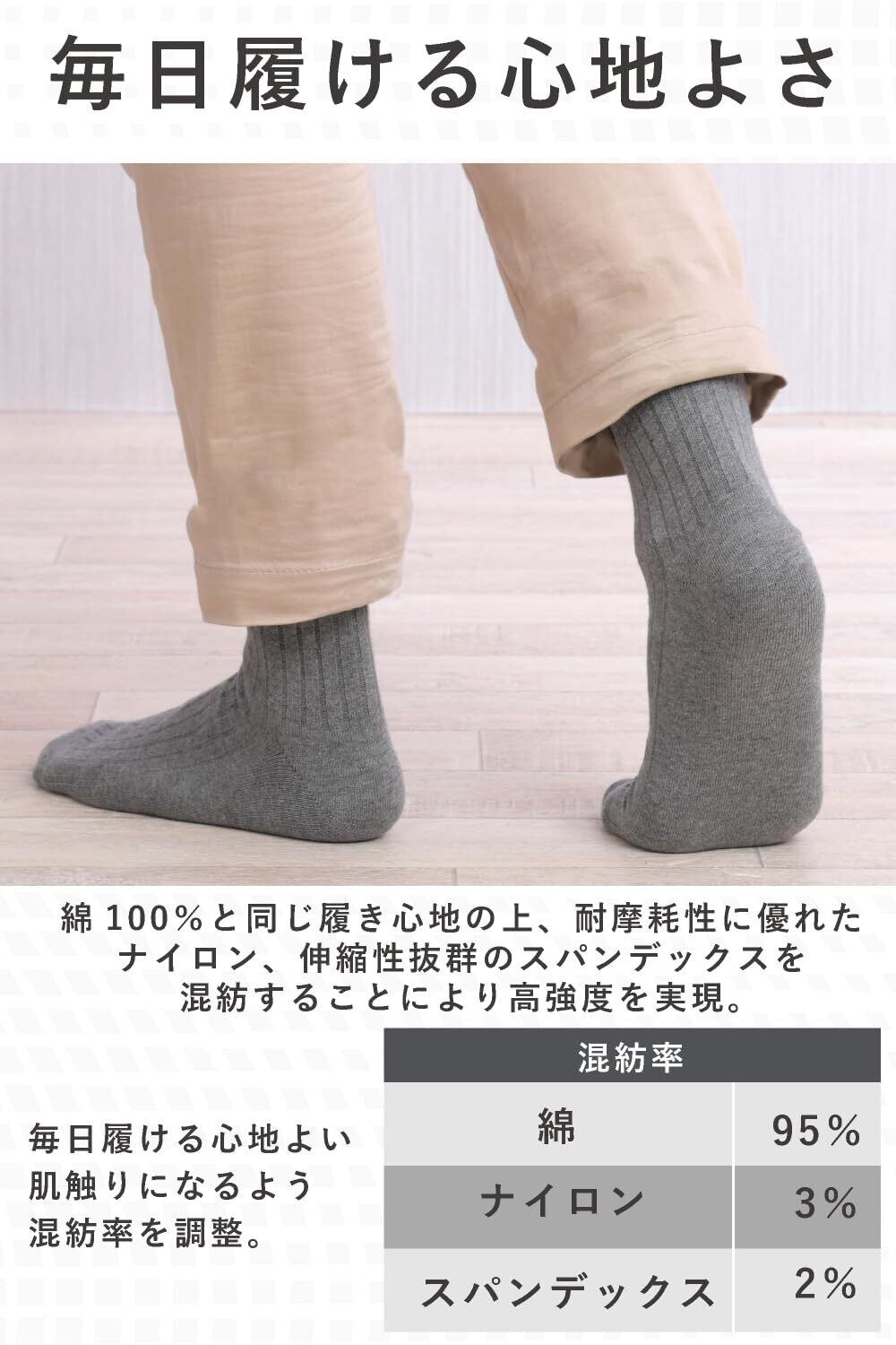 毎日履ける心地よさ 高品質コーマ綿95%にナイロンとスパンデックスを混紡することにより高強度を実現し、心地よい肌触りになるように混紡率を調整