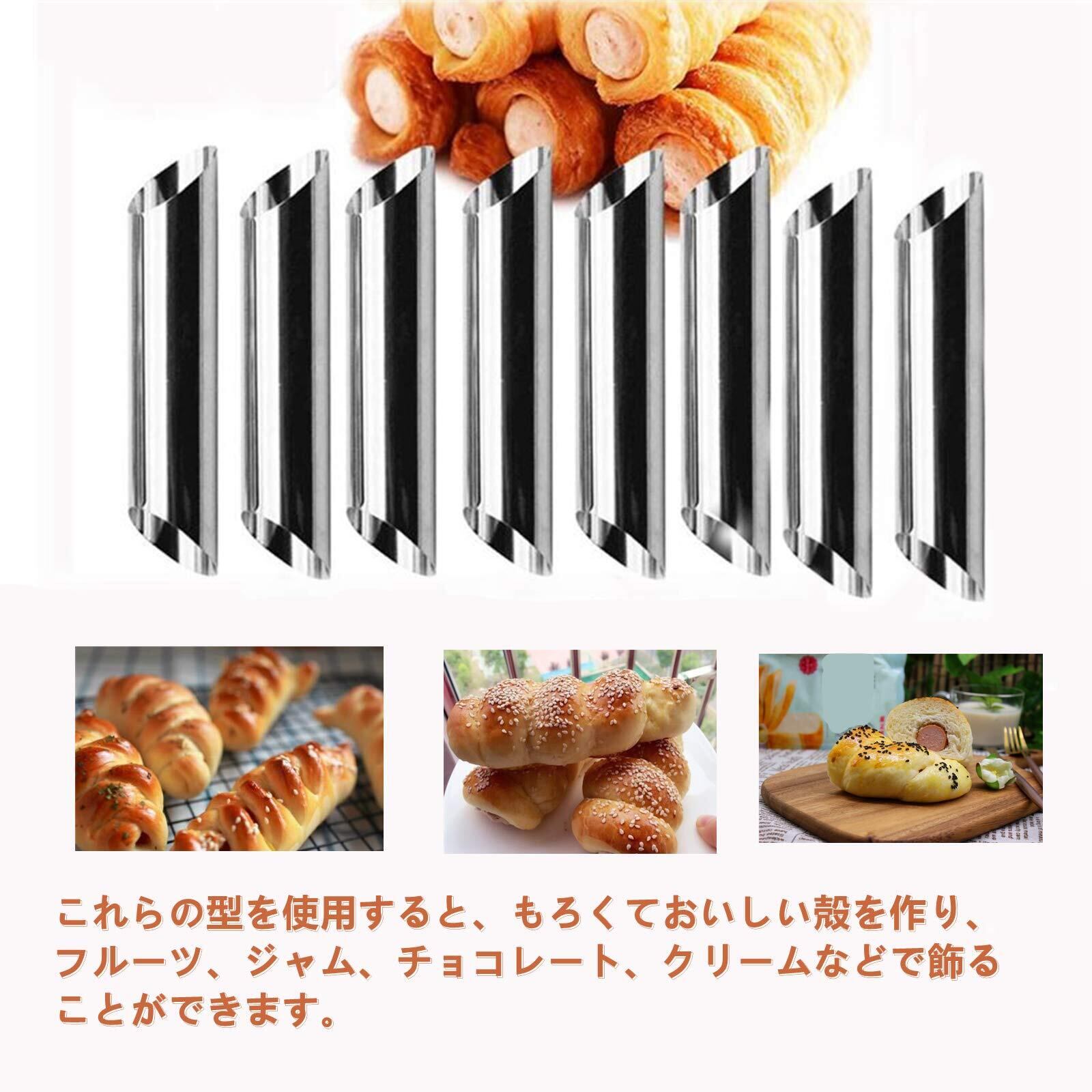 【クリームコーナーモールドサイズ】:12.5×2.7-2.8cm。 8 個、ダブル ベベル - ノンスティック ネジ デンマーク チューブ。クリームコーナーモールドカラー:ステンレスオリジナルカラー。カノーリ、クロワッサン、デニッシュロール、ピザロールなどに適しています。