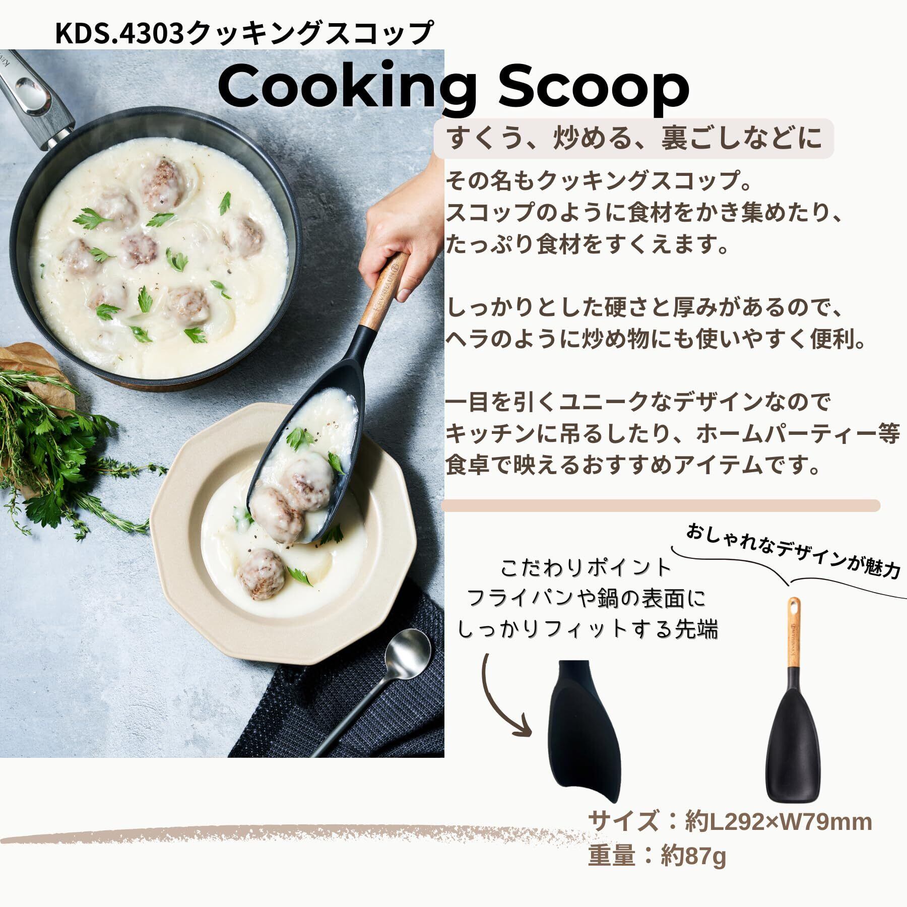 スコップのように食材をすくったり、料理ヘラの代わりに炒めものにつかったりできるクッキングスコップ