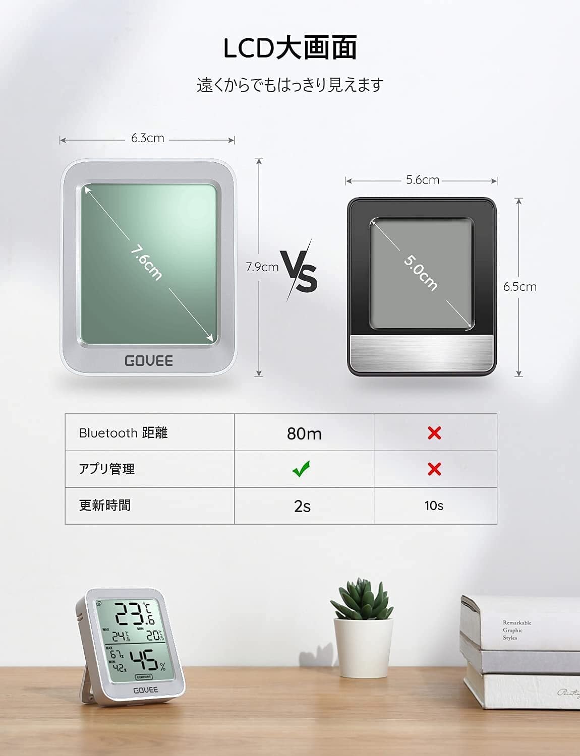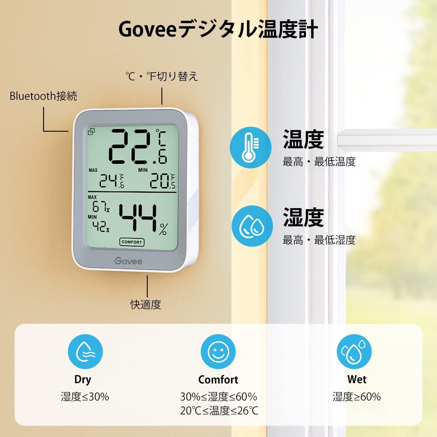 Govee 温湿度計 温度計 湿度計 Bluetooth デジタル スマホで温度湿度管理 温度 湿度 高精度 コンパクト 大画面 グラフ記録 アラーム 異常通知 最高最低温湿度 乾燥対策 加湿対策 温室 地下室 室内 置掛兼用 | BASE SHOP