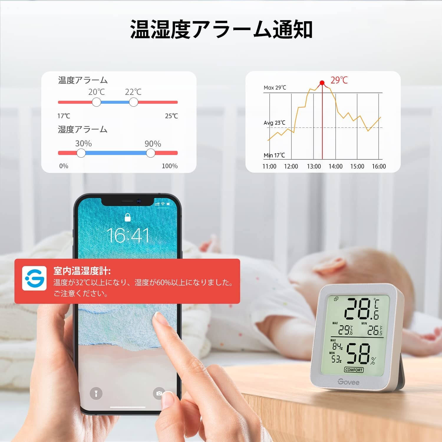 Govee 温湿度計 温度計 湿度計 Bluetooth デジタル スマホで温度湿度管理 温度 湿度 高精度 コンパクト 大画面 グラフ記録 アラーム 異常通知 最高最低温湿度 乾燥対策 加湿対策 温室 地下室 室内 置掛兼用