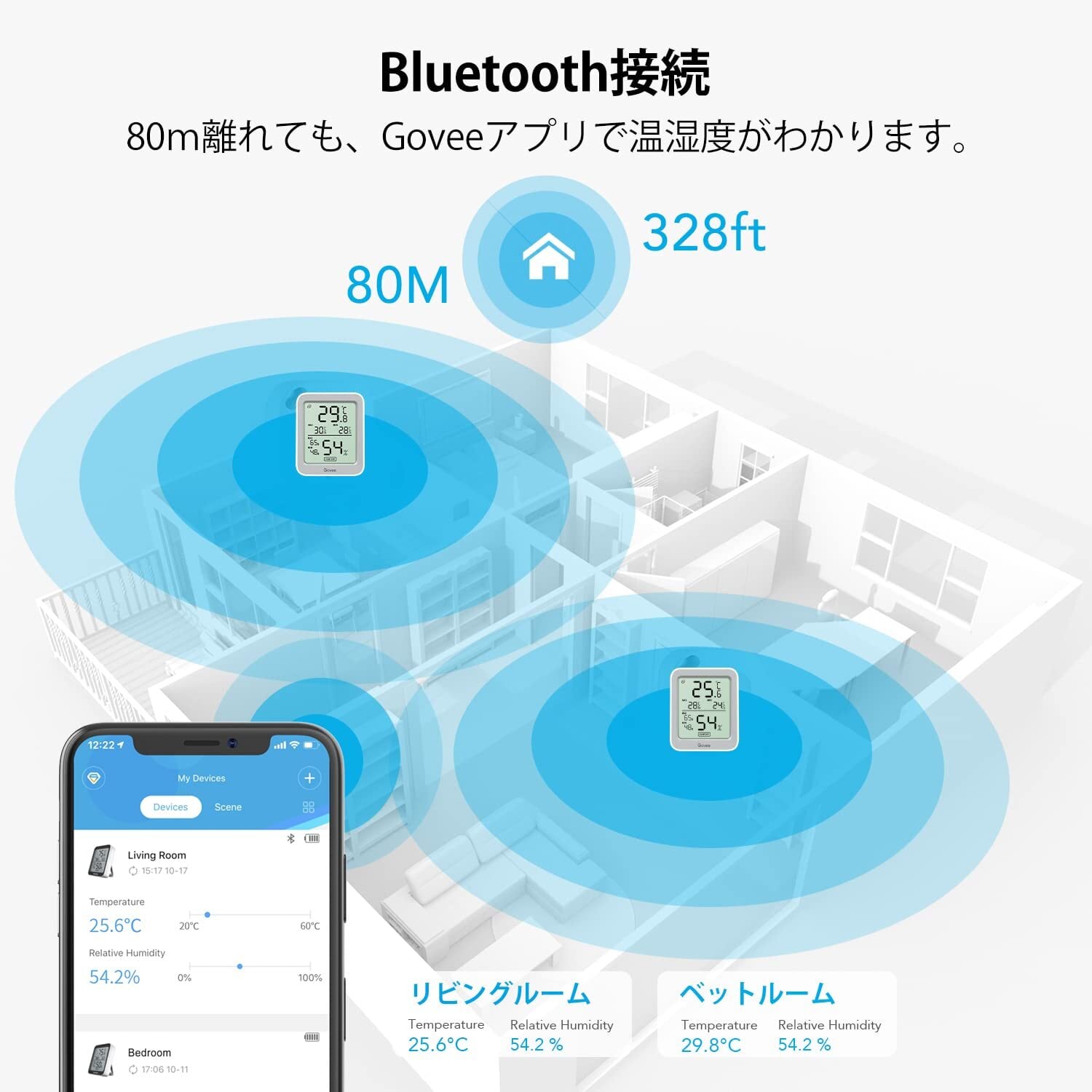 【Bluetooth接続・遠隔確認】Govee Bluetooth温湿度計は「Govee Home」アプリで温湿度を最大 80m遠隔確認できます。温湿度計に近づく必要はなく、気軽に温湿度情報がスマホで読取れます。また、インフルエンザや乾燥、梅雨時期のカビ予防にもお役に立ちます。