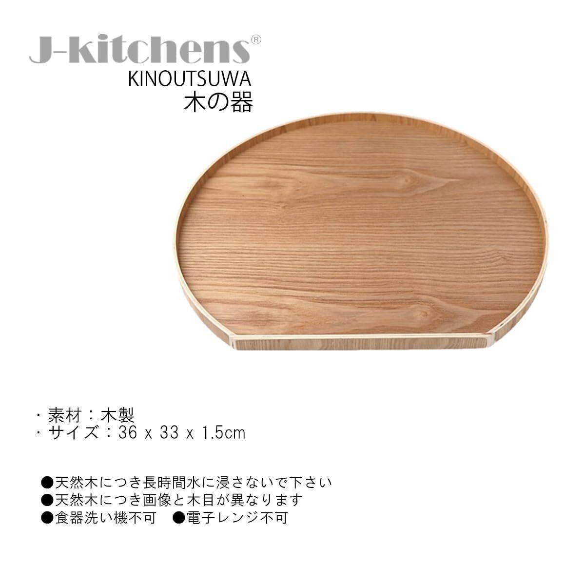 J-kitchens 木製 盆 半月 膳 ナチュラル 36 x 33 x 1.5cm