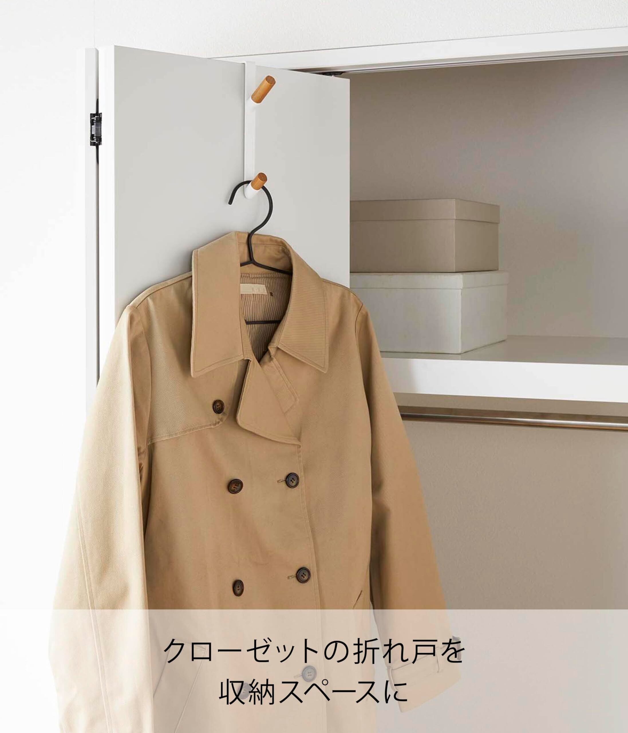 ドアや折れ戸に簡単取り付け! ハンガーや帽子、バッグなどをサッと掛けられるドアハンガー。