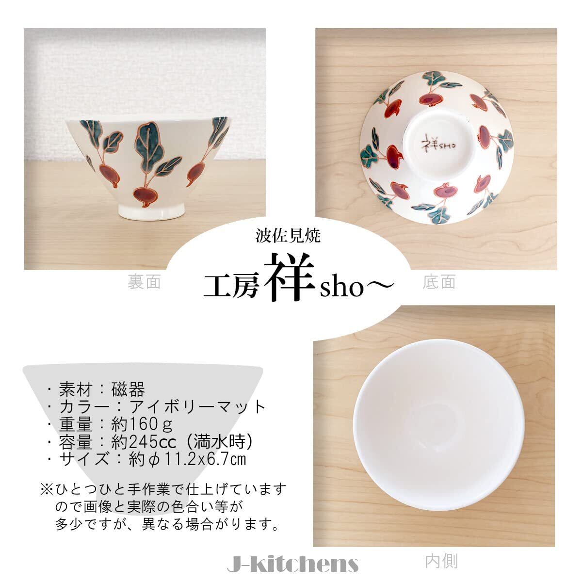 ジェイキッチンズ J-kitchens 工房祥 sho~ フレッシュ アート 反 茶碗 ペアー (ラディッシュ ビーン) 波佐見焼 日本製