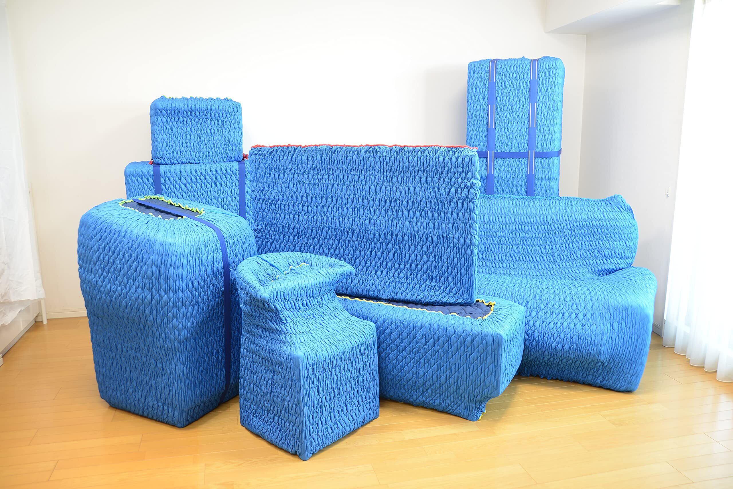 【日本製】アサヒ フィットカバー(ゴム入りパッド)80M 1枚(梱包用品/養生資材/引越し用品/引越資材/蛇腹形状) 表生地:青色・ 裏生地:青色 (両面青色仕様) 円周:1,600~4,000mm / 縦長さ:800mm | BASE SHOP